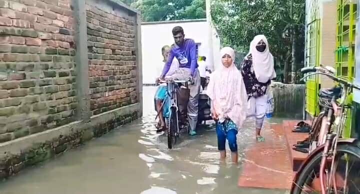 আব্দুর রশিদ / উপকূলীয় জেলা সাতক্ষীরায় গত কয়েক দিনের ভারী বর্ষণের কারণে পৌরসভার বিভিন্ন এলাকাসহ জেলার নিম্নাঞ্চলের বিস্তীর্ণ এলাকা প্লাবিত হয়েছে। পানিবন্দি হয়ে পড়েছে হাজার হাজার পরিবার। বসতবাড়িতে পানি ঢুকে গেছে, ভেসে গেছে ফসলের ক্ষেত ও মৎস্য ঘের, ভেঙে পড়ছে স্যানিটেশন ব্যবস্থা। এতে চরম বিপাকে পড়েছে খেটে খাওয়া মানুষ। বিশেষ করে ভ্যান ও রিকশা চালকসহ দিনমজুর মানুষেরা।সাতক্ষীরা পৌরসভার ইটাগাছা এলাকার বাসিন্দা জানান, পানি নিষ্কাশনের যথাযথ ড্রেনেজ ব্যবস্থা না থাকা, অপরিকল্পিতভাবে নদী-খাল খনন ও দখলের কারণে মানুষ বছরের পর বছর ধরে জলাবদ্ধতায় ভুগছেন।ভারী বর্ষণে ইতোমধ্যে তলিয়ে গেছে পৌরসভার ইটাগাছা, কামালনগর, বারুইপাড়া, কুখরালী, রসুলপুর, মেহেদিবাগ, মধুমোল্লারডাঙ্গী, বকচরা, পলাশপোল, পুরাতন সাতক্ষীরা, বদ্দিপুর কলোনি, ঘুটিরডাঙি ও কাটিয়া মাঠপাড়াসহ নিম্নাঞ্চলের বিস্তীর্ণ এলাকা। পানিবন্দি হয়ে পড়েছে জেলার নিম্নাঞ্চলের হাজার হাজার পরিবার।এলাকাবাসীরা আরও জানান, বছরের চার থেকে পাঁচ মাস এই এলাকা গুলো হাঁটু পানি জমে থাকে। দীর্ঘ দিন পানি আটকে থাকায় চলাচলের রাস্তাটি গেছে নষ্ট হয়ে যাচ্ছে। দূষিত পানির কারণে দেখা দিয়েছে পানিবাহিত চর্মরোগ স্থায়ী জলাবদ্ধতায় রূপ নিয়েছে এলাকাটি। গোসল, পায়খানা ও খাবার পানি সংগ্রহে খুব কষ্ট হচ্ছে এলাকার মানুষের।এ অবস্থায় শিশুরাও ঠিকমতো স্কুলে যেতে পারছে না দূষিত পানি ও সাপের ভয়ে। এ সময় সাতক্ষীরা সদর উপজেলা নির্বাহী কর্মকর্তা (ইউএনও) শোয়াইব আহমাদ জানান, জলাবদ্ধতা নিরসনে ইতোমধ্যে অবৈধ নেটপাটা ও বেড়িবাধ দিয়ে যারা মাছ চাষ করেছেন সেগুলো কেটে দিয়ে পানি অপসারণ করা হচ্ছে। গতকাল ভারী বর্ষণের মধ্যে ভোমরা স্থলবন্দর এলাকায় পানি অপসারণের জন্য কাজ করা হয়েছে। দ্রুত সময়ের মধ্যে পরিস্থিতির কিছুটা উন্নতি হবে বলে আশাবাদ ব্যক্ত করেন তিনি।
