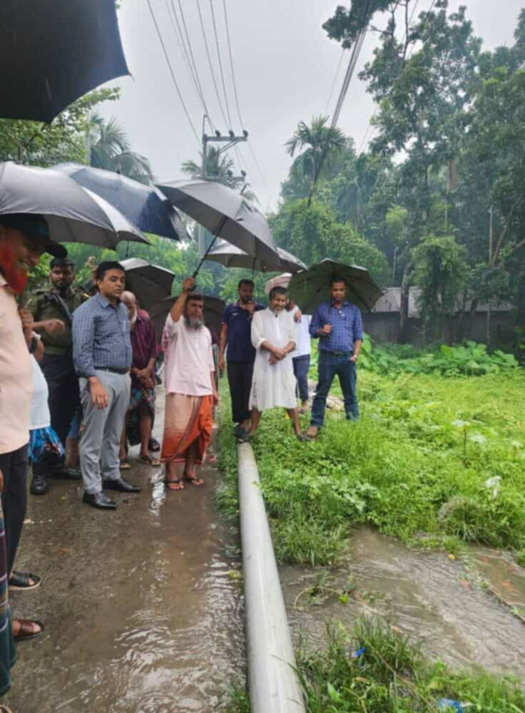 মোঃ রানা মোল্লা /খুলনা দিঘলিয়া উপজেলার মানবিক কাজ করে চলেছে একের পর এক ইউএনও আরিফুল ইসলাম উপজেলার সেনহাটি ৭ নং ওয়ার্ডের ২ নং কলোনী এলাকায় শতাধিক বসতি এলাকা স্থায়ী জলাবদ্ধতার সৃষ্টি হয়েছে। বর্ষা মৌসুমে লোকজন পানির মধ্যে বসবাস ও নিত্য কর্ম পরিচালনা করছে। সামাজিক গণমাধ্যমে এমন সংবাদ প্রচার হওয়ার পর তিনি সরেজমিনে স্থায়ী জলাবদ্ধ এলাকা তাৎক্ষনিক পরিদর্শনে আসেন। তিনি মানুষের দুঃখ কষ্টের কথা শোনেন। তিনি এলাকার লোকজন ও স্থানীয় দুই ওয়ার্ডের ইউপি সদস্যদের সাথে আলাপ আলোচনার মাধ্যমে জলাবদ্ধতা নিরসনে সাময়িক ব্যবস্থা করেন। তিনি শুকনা মৌসুমে এলাকার জলাবদ্ধতার স্থায়ী সমাধানে পাকা ড্রেন স্থাপনের ব্যাপারে আশ্বাস প্রদান করেন। এ সময় উপজেলা নির্বাহী অফিসার আরিফুল ইসলাম এর সাথে উপস্থিত ছিলেন উপজেলা প্রকল্প বাস্তবায়ন অফিসার মোঃ আরিফ হোসেন। আরো উপস্থিত ছিলেন সাংবাদিক সৈয়দ জাহিদুজ্জামান, মেহেদী হাসান, রুবেল, মনিরুল ইসলাম মোড়ল, দিঘলিয়া সদর ইউনিয়নের ৭নং ওয়ার্ড ইউপি সদস্য শেখ আকতার হোসেন, সেনহাটি ইউনিয়নের ৭ নং ওয়ার্ডের ইউপি সদস্য মোঃ আমীর হোসেন, ইউপি সদস্য মোঃ সাইফুল্লাহ, সেনহাটি ৭, ৮ ও ৯ নং ওয়ার্ডের সংরক্ষিত মহিলা ইউপি সদস্য আলেয়া পারভীন, মোল্লা কামরুল ইসলাম প্রমুখ।