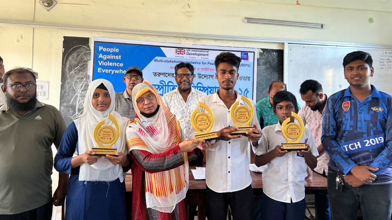 পরেশ দেবনাথ/কুষ্টিয়া সদরে “সম্প্রীতি অলিম্পিয়াড ২০২৫” অনুষ্ঠিত।তরুণদের অংশগ্রহণে কুইজ প্রতিযোগিতা ও পুরস্কার বিতরণ অনুষ্ঠান অনুষ্ঠিত হয়েছে। দি হাঙ্গার প্রজেক্ট বাংলাদেশ-এর মাল্টি-স্টেকহোল্ডার ইনিশিয়েটিভ ফর পিস অ্যান্ড স্ট্যাবিলিটি (এমআইপিএস) প্রকল্পের আওতায় এবং এফসিডিও’র অর্থায়নে কুষ্টিয়া সদর উপজেলায় “সম্প্রীতি অলিম্পিয়াড ২০২৫” অনুষ্ঠিত হয়েছে।বুধবার (২৩ জুলাই-২৫) কলকাকলী মাধ্যমিক বিদ্যালয়ের শ্রেণিকক্ষে ওয়াইপিএজি কুষ্টিয়ার উদ্যোগে আয়োজন করা হয় কুইজ প্রতিযোগিতা ও পুরস্কার বিতরণ অনুষ্ঠান। অনিষ্ঠান সঞ্চালনা করেন, দি হাঙ্গার প্রজেক্ট বাংলাদেশের খুলনা অঞ্চলের এরিয়া কো-অর্ডিনেটর এস.এম রাজু জবেদ। কুইজের প্রশ্নপত্র ও সংশ্লিষ্ট বিষয়ে আলোচনা করেন, পিস অ্যাম্বাসেডর মোঃ আসাদুজ্জামান। বক্তব্য রাখেন, পিএফজি সমন্বয়কারী অধ্যাপক মোঃ শফিকুল ইসলাম, ফিল্ড কো-অর্ডিনেটর মোঃ আশরাফুজ্জামান, ওয়াইপিএজি সমন্বয়কারি সাদিক হাসান রহিদ, ভারপ্রাপ্ত প্রধান শিক্ষিকা লায়লা ইয়াসমিন, শিক্ষক হাসানুর রহমান, কালাম হোসেন, আরিফ ইসলাম ও শিকদার আজাদ রহমান।কুইজ প্রতিযোগিতায় ৬ষ্ঠ থেকে ১০ম শ্রেণির ৬০ জন শিক্ষার্থী অংশগ্রহণ করে। প্রতিযোগীরা ৩০টি সম্প্রীতি ও সাধারণ জ্ঞানের প্রশ্নে অংশ নেয়। সেরা তিনজন বিজয়ীর নাম ঘোষণা করে পুরস্কার প্রদান করা হয়। অনুষ্ঠানে শিক্ষার্থীদের মতামত গ্রহণ করা হয় এবং প্রতিষ্ঠানের পক্ষ থেকে তাদের উৎসাহ দিতে সম্মাননা ক্রেস্ট প্রদান করা হয়।আলোচনায় শিক্ষার্থীরা সম্প্রীতি, সহাবস্থান ও শান্তির মূল্যবোধ সম্পর্কে তাদের অনুভূতি তুলে ধরে ৬ষ্ঠ শ্রেণির শিক্ষার্থী জান্নাতুল ফেরদৌস মাহি বলেন, “সব ধর্মের মানুষ একসাথে অংশগ্রহণ করায় নিজেকে গর্বিত মনে হয়েছে।” সপ্তম শ্রেণির কৌশিক বিশ্বাস বলেন, “মাইলস্টোন স্কুলে মৃত্যুর সংখ্যা নিয়ে মিথ্যাচার রোধে সচেতন হতে হবে।” অষ্টম শ্রেণির আবিদুর রহমান জানান, “আমি সেনাবাহিনীতে যেতে চাই, সম্প্রীতির বিষয়টি আমাকে দারুণ অনুপ্রাণিত করেছে।” নবম শ্রেণির সাফোয়ান বলেন, “গণতান্ত্রিক পন্থা ও শান্তি প্রতিষ্ঠার উপায় সম্পর্কে জেনেছি।” দশম শ্রেণির শিক্ষার্থী নুসরাত জাহান বলেন, “সাম্য ও সহাবস্থানের চর্চা করে সম্প্রীতি বজায়রাখবো।”অনুষ্ঠান শেষে “ আজকের তরুণরাই আগামীর সম্প্রীতি রক্ষার নেতৃত্ব দিবে”—এই শিরোনামে শপথ পাঠের মধ্য দিয়ে অনুষ্ঠান সমাপ্ত ঘোষণা করা হয়।