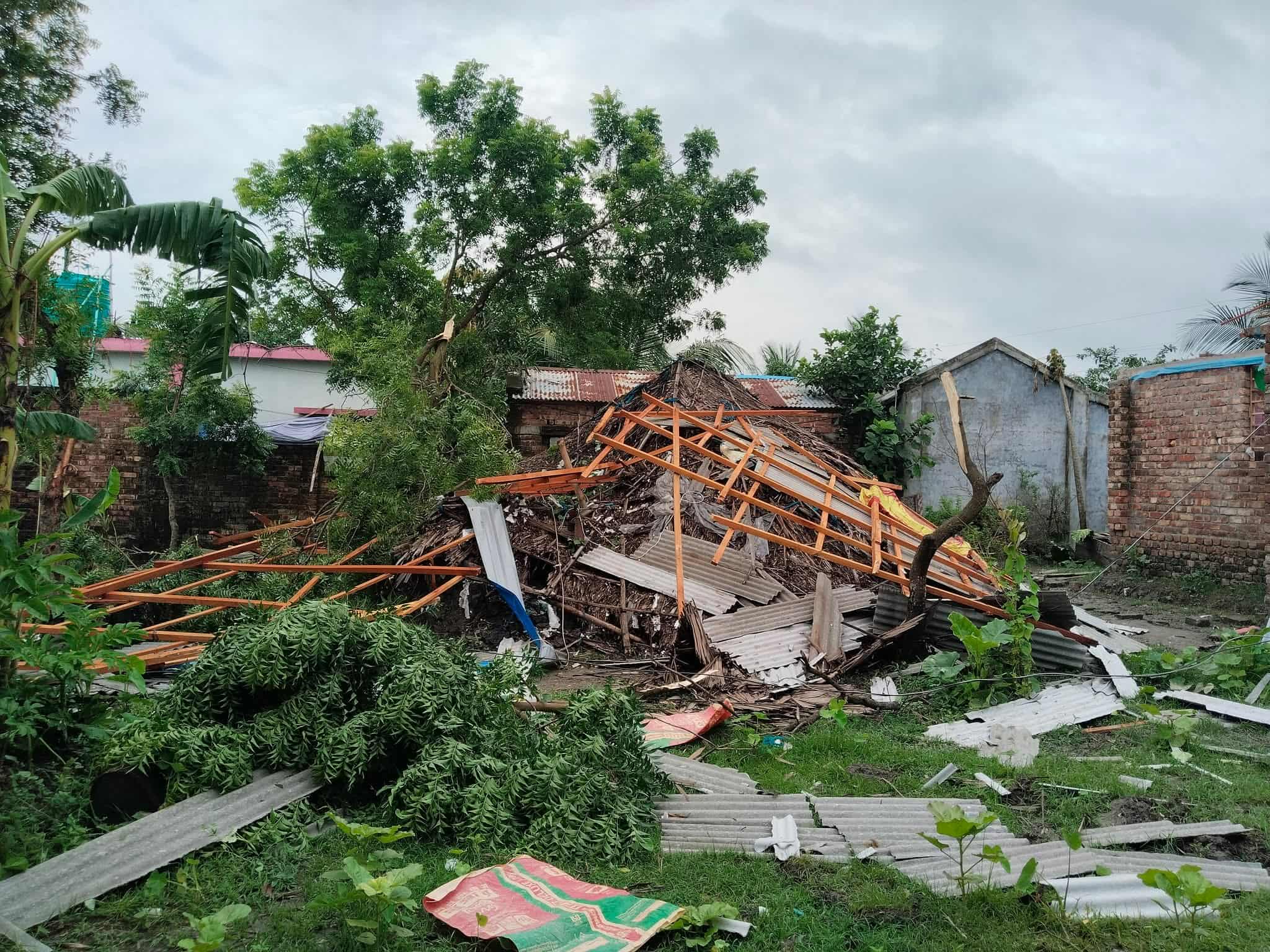 নিজস্ব প্রতিবেদক /দেবহাটা উপজেলার কুলিয়া ইউনিয়নের সুবর্ণাবাদ গ্রামে মাত্র ১৫ থেকে ৩০ সেকেন্ড স্থায়ী এক আকস্মিক ঘূর্ণিঝড়ে একটি পরিবারের বসতঘর সম্পূর্ণরূপে লন্ডভন্ড হয়ে গেছে।শনিবার (২৬ জুলাই) রাতে আনুমানিক সাড়ে তিনটার দিকে এ দুর্যোগপূর্ণ পরিস্থিতির সৃষ্টি হয়। ঘূর্ণিঝড়টি বাবু বিরেন্দ্রনাথ ঢালীর বসতঘরে আঘাত হানলে মুহূর্তেই ঘরের চাল উড়িয়ে নিয়ে যায় এবং ভেতরের সব আসবাবপত্র মারাত্মকভাবে ক্ষতিগ্রস্ত হয়।প্রত্যক্ষদর্শীরা জানান, হঠাৎ শুরু হওয়া প্রবল বাতাস মাত্র কয়েক সেকেন্ডের মধ্যেই পুরা ঘরটিকে উল্টে-পাল্টে দেয়। তারা আরও জানান, এমন ক্ষতিকর ঘূর্ণিঝড় এত অল্প সময়ের জন্য হলেও স্থানীয়দের আতঙ্কিত করেছে।ক্ষতিগ্রস্ত বাবু বিরেন্দ্রনাথ ঢালী বলেন,আমি কিছু বুঝে ওঠার আগেই হঠাৎ ঝড় শুরু হয়। ঘর কাঁপতে থাকে, এরপর ধ্বসে পড়ে। সব কিছু শেষ হয়ে গেছে। এখন স্ত্রী-সন্তান নিয়ে কোথায় থাকবো, কিছুই বুঝতে পারছি না।এই ক্ষয়ক্ষতির পর ঘটনাস্থলে অনেক স্থানীয় মানুষ ছুটে আসেন এবং সহযোগিতার হাত বাড়িয়ে দেন। তবে এখন পর্যন্ত কোনো সরকারি সহযোগিতা পৌঁছায়নি বলেও অভিযোগ করেছেন ক্ষতিগ্রস্ত পরিবারটি।স্থানীয় জনপ্রতিনিধি ও প্রশাসনের পক্ষ থেকে দ্রুত সহায়তা এবং পুনর্বাসনের ব্যবস্থা গ্রহণের দাবি জানিয়েছেন এলাকাবাসী।