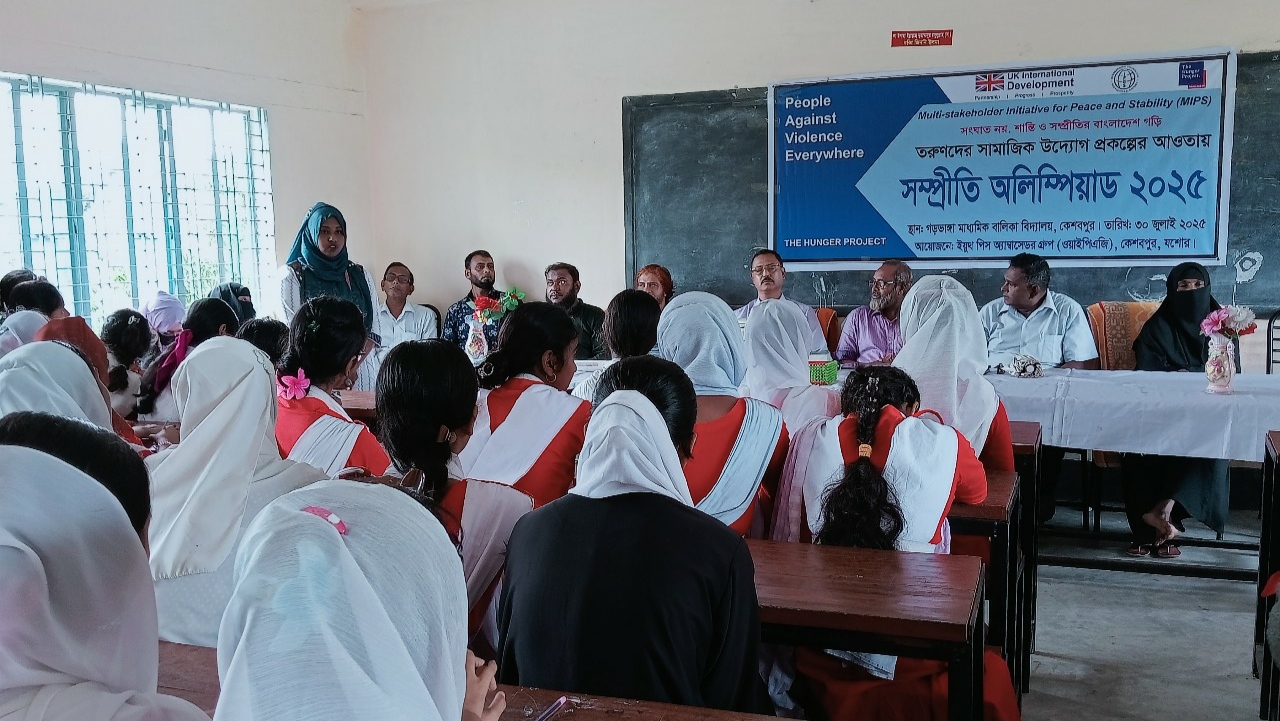 পরেশ দেবনাথ( নিজস্ব প্রতিনিধি)বাঘারপাড়ায় “সম্প্রীতি অলিম্পিয়াড ২০২৫”-এ তরুণদের অংশগ্রহণে কুইজ প্রতিযোগিতা ও পুরস্কার বিতরণী অনুষ্ঠান অনুষ্ঠিত হয়েছে। দি হাঙ্গার প্রজেক্ট বাংলাদেশ-এর মাল্টি-স্টেকহোল্ডার ইনিশিয়েটিভ ফর পিস অ্যান্ড স্ট্যাবিলিটি (এমআইপিএস) প্রকল্পের আওতায় এবং এফসিডিও’র অর্থায়নে যশোর জেলার বাঘারপাড়া উপজেলায় ওই “সম্প্রীতি অলিম্পিয়াড ২০২৫” অনুষ্ঠিত হয়।মঙ্গলবার (২৯ জুলাই-২৫) বীরপ্রতিক ইসহাক কলেজের শ্রেণিকক্ষে ওয়াইপিএজি বাঘারপাড়ার উদ্যোগে আয়োজিত অনুষ্ঠানে সভাপতি হিসাবে উপস্থিত ছিলেন, অত্র কলেজের অধ্যক্ষ মোঃ মোস্তাক মোশের্দ এবং সঞ্চালনা করেন জ্যেষ্ঠ প্রভাষক চৈতন্য কুমার বর্মন এবং সাবির্ক বিষয় সমন্বয় করেন দি হাঙ্গার প্রজেক্ট বাংলাদেশের যশোর রিজিওনের মাঠ সমন্বয়কারী মোঃ আশরাফুজ্জামান।অন্যান্যের মধ্যে বক্তব্য রাখেন, পিস অ্যাম্বাসেডর দিলরুবা পারভিন, ওয়াইপিএজি সমন্বয়কারি রিয়াজ হোসেন, সদস্য তামান্না খাতুন, সহকারি অধ্যাপক সুধাংশু কুমার রায়, শংকর কুমার পাঠক, দ্বাদশ শেণীর ছাত্রী তুষি রাজবংশী, শ্রাবনী কুন্ডু এবং ছাত্র জোবায়ের হাসান।