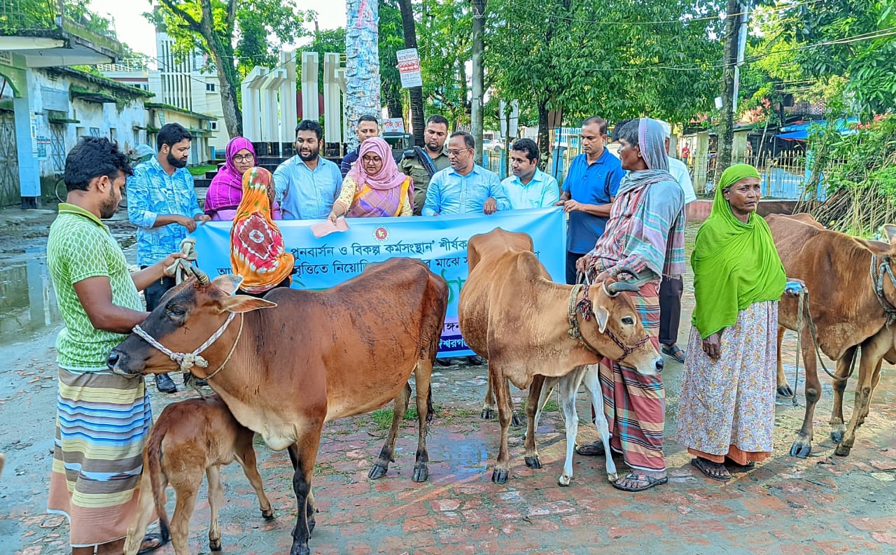 শাহ আলম কৌশিক,ঈশ্বরগঞ্জ,(ময়মনসিংহ)ময়মনসিংহের ঈশ্বরগঞ্জ উপজেলায় ভিক্ষুক পুনর্বাসন ও বিকল্প কর্মসংস্থান কর্মসূচির আওতায় তিনজন ভিক্ষুকের মাঝে গরু ও নগদ অর্থ বিতরণ করা হয়েছে। প্রতিজন উপকারভোগীকে একটি করে গরু এবং নগদ ১৪ হাজার টাকা প্রদান করা হয়।বুধবার (৩০ জুলাই) বিকাল ৫টায় উপজেলা পরিষদ চত্বরে উপজেলা প্রশাসন ও সমাজসেবা কার্যালয়ের যৌথ আয়োজনে এ অনুদান বিতরণ অনুষ্ঠান অনুষ্ঠিত হয়।অনুষ্ঠানে প্রধান অতিথি হিসেবে উপস্থিত ছিলেন উপজেলা নির্বাহী কর্মকর্তা (ইউএনও) সানজিদা রহমান। তিনি নিজ হাতে উপকারভোগীদের মাঝে গরু, বাছুর, রশি এবং নগদ অর্থ তুলে দেন। এ সময় উপকারভোগীরা আর কখনো ভিক্ষা না করার অঙ্গীকার করেন।অনুষ্ঠানে আরও উপস্থিত ছিলেন ময়মনসিংহ জেলা সমাজসেবা কার্যালয়ের উপ-পরিচালক মোঃ রাজু আহম্মেদ,উপজেলা সমাজসেবা কর্মকর্তা মোঃ হাসান কিবরিয়া,উপজেলা মহিলা বিষয়ক কর্মকর্তা ফাতেমাতুজ্জহুরা, এবং অতিরিক্ত কৃষি কর্মকর্তা মোঃ ওহাদির রহমান।৫নং জাটিয়া ইউনিয়নের মালিয়াটি গ্রামের উপকারভোগী মো.আবুল হোসেন বলেন,আমি আগে ভিক্ষা করে চলতাম, এখন গরু পেয়েছি। এই গরু লালন-পালন করে দুধ বিক্রি করে চলবো, এর আগে কেউ এমন সাহায্য করেনি। গরুটি পালন করেই আমার জীবিকা চালাবো। সরকার ও ম্যাডাম ইউএনও’র কাছে অনেক কৃতজ্ঞ।উপজেলা নির্বাহী কর্মকর্তা (ইউএনও) সানজিদা রহমান বলেন, সরকারের লক্ষ্য দেশের প্রত্যেক ভিক্ষুককে কর্মসংস্থানের মাধ্যমে পুনর্বাসন করা।আমরা চাই আজ যারা গরু ও নগদ অর্থ পেয়েছেন, তাদের যেন ভিক্ষা না করতে এটিকে সঠিকভাবে কাজে লাগিয়ে আত্মনির্ভরশীল হতে পারেন,সমাজসেবা অধিদপ্তর থেকে এ উদ্যোগ নেওয়া হয়েছে।এই মানবিক উদ্যোগটি ঈশ্বরগঞ্জ উপজেলায় একটি প্রেরণাদায়ী দৃষ্টান্ত হয়ে উঠেছে। সমাজের পিছিয়ে পড়া শ্রেণিকে কর্মক্ষম করে তুলতে এ ধরনের কর্মসূচি স্থানীয় প্রশাসনের আন্তরিকতার প্রতিফলন।