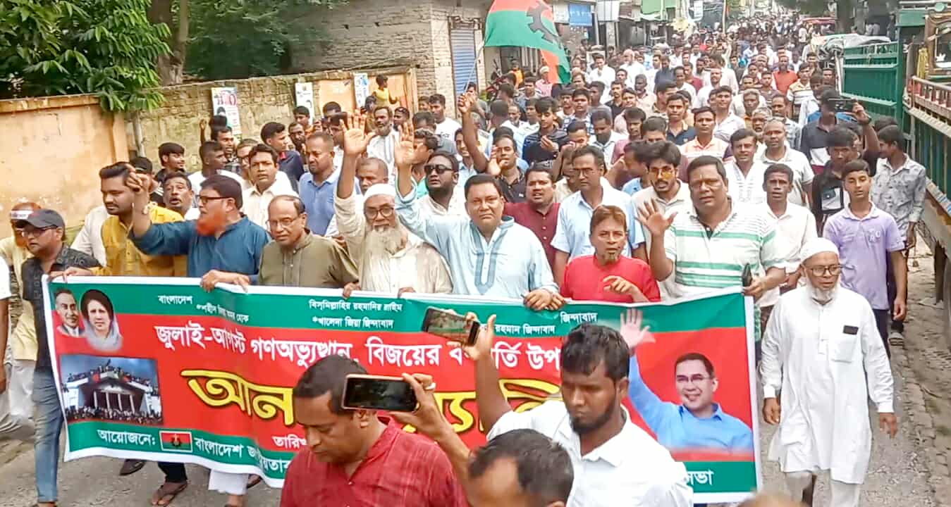 মোঃসামিরুল ইসলাম/ চাঁপাইনবাবগঞ্জ প্রতিনিধি:চাঁপাইনবাবগঞ্জের গোমস্তাপুরে জুলাই-আগস্ট গণঅভ্যুত্থান, বিজয়ের বর্ষপূর্তি উপলক্ষে বিএনপির আনন্দ র্যালি ও আলোচনা সভা অনুষ্ঠিত হয়েছে।বিজয়ের বর্ষপূর্তি উপলক্ষে গোমস্তাপুর উপজেলা বিএনপি ও রহনপুর পৌর বিএনপির আয়োজনে মঙ্গলবার(০৫ আগষ্ট) বিকেলে রহনপুর পৌর এলাকার উপজেলা চত্বর মরহুম বাইরুল চেয়ারম্যানের চাটাল হতে আনন্দ র্যালি বের হয়ে রহনপুর পৌর এলাকার প্রধান প্রধান সড়ক প্রদক্ষিণ শেষে একই স্থানে আলোচনা সভা অনুষ্ঠিত হয়।এতে সভাপতিত্ব করেন উপজেলা বিএনপির( ভারপ্রাপ্ত) সভাপতি মোয়াজ্জেম হোসেন।এ সময় প্রধান অতিথি হিসেবে উপস্থিত ছিলেন ও বক্তব্য দেন, জেলা বিএনপির আহ্বায়ক গোলাম জাকারিয়া।প্রধান বক্তা হিসেবে উপস্থিত ছিলেন, উপজেলা বিএনপির সদস্য সচিব ও চাঁপাইনবাবগঞ্জ-২ আসনে বিএনপির মনোনয়ন প্রত্যাশী অ্যাডভোকেট নুরুল ইসলাম সেন্টু, ও রহনপুর পৌর বিএনপির আহবায়ক এনায়েত করিম তৌকি।বিশেষ অতিথি হিসেবে উপস্থিত ছিলেন, বাঙ্গাবাড়ি ইউনিয়ন বিএনপির সভাপতি রফিকুল ইসলাম রাজ,গোমস্তাপুর ইউনিয়ন বিএনপির সভাপতি আব্দুল্লাহ আল রাইহান,সাধারণ সম্পাদক মার্জুক আহমেদ, রাধানগর ইউনিয়ন, সাধারণ সম্পাদক, শামিউল ইসলাম বাবুল, চৌডালা ইউনিয়ন, বিএনপির সভাপতি মুন্তাজ আলী, ইঞ্জিনিয়ার এম ফেরদৌস ইসলাম খোকন,রহনপুর পৌর বিএনপির যুগ্ম আহবায়ক সাদিকুল ইসলাম,রহনপুর পৌর বিএনপি সদস্য সচিব, ইসমাইল হোসেন, বিএনপি নেতা সাজ্জাদ, বিপ্লব,যুবনেতা, রবিউল ইসলাম, ছাত্রনেতা, মুরসালিন, নাফিস প্রমূখসহ গোমস্তাপুর উপজেলা শাখা ও রহনপুর পৌরসভা শাখা বিএনপি, যুবদল, ছাত্রদলের সকল পর্যায়ের নেতৃবৃন্দ।এ সময় উপস্থিত বক্তারা বলেন, “জুলাই-আগস্টের চেতনার বাস্তবায়ন না হলে শহীদ ও আহতদের রক্তের সঙ্গে প্রতারণা করা হবে। বিএনপি নেতাকর্মীরা সাধারণ জনগণকে সঙ্গে নিয়ে সেই চেতনা বাস্তবায়নে দৃঢ় প্রতিজ্ঞ।তারা আরও বলেন, “জুলাই আমাদের জাতীয় চেতনার জাগ্রত অংশ। এই চেতনা বাস্তবায়নে সকলকে ঐক্যবদ্ধ থেকে ফ্যাসিবাদের বিরুদ্ধে লড়াই চালিয়ে যেতে হবে, যেন ভবিষ্যতে আর কোনো স্বৈরাচার দেশে ক্ষমতায় আসতে না পারে।