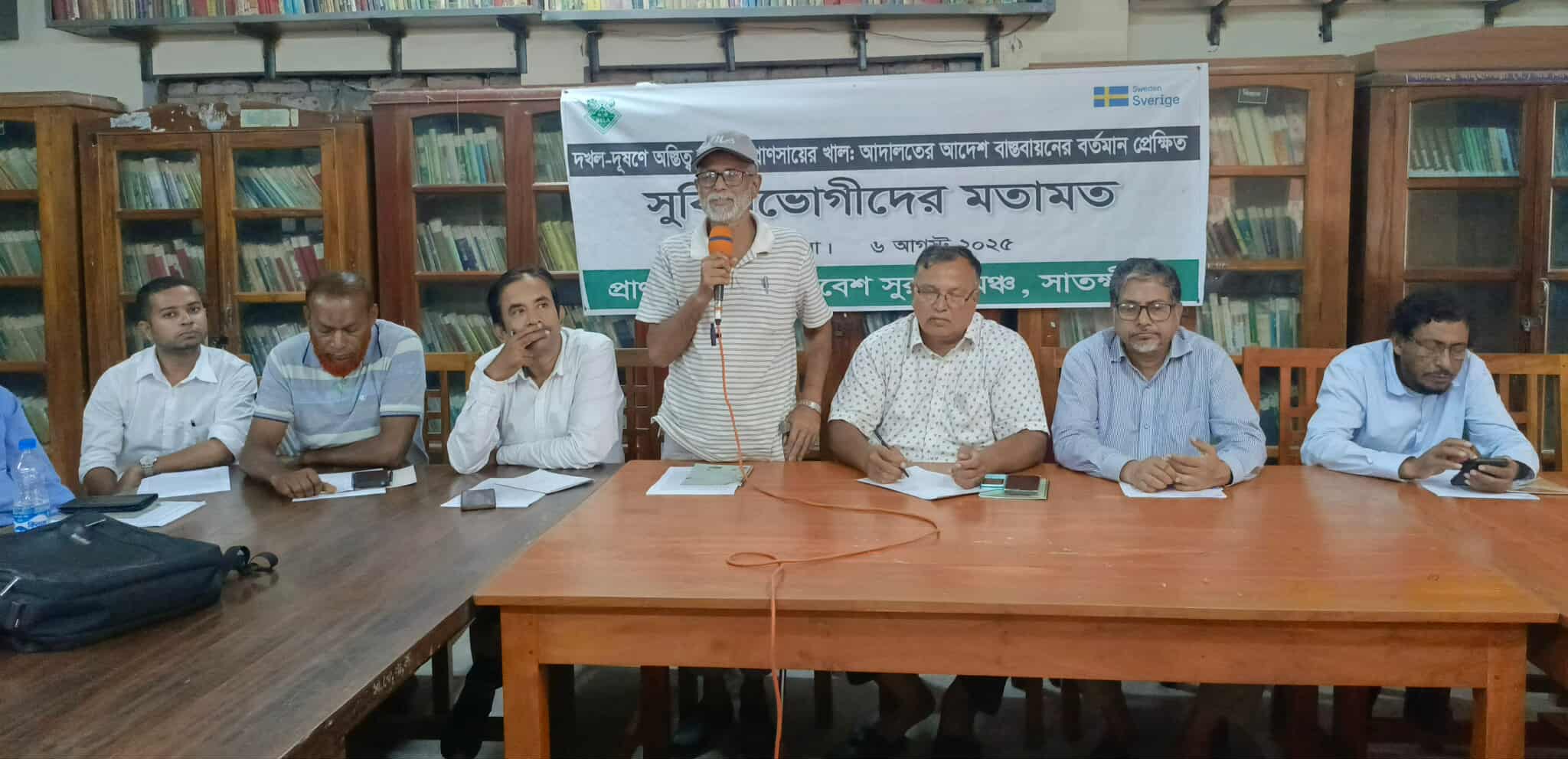 আব্দুর রশিদ/আজ ৬ আগস্ট বুধবার সকাল১২টায় সাতক্ষীরা কেন্দ্রীয় পাবলিক লাইব্রেরি হল রুমে দখল-দূষণে অস্তিত্ব সংকটে প্রাণসায়ের খাল আদালতের আদেশ বাস্তবায়নের বর্তমান প্রেক্ষিত সুবিধাভোগীদের মতামত সভা অনুষ্ঠিত হয়েছে।এ সময় অনুষ্ঠানে সভাপতি তো করেন মাদকচন্দ্র দত্ত নির্বাহী পরিচালক স্বদেশ। মাহফুজুর রহমান মুকুল সমন্বয়কারী বেলা প্রধান অতিথি হিসেবে উপস্থিত ছিলেন পরিবেশ অধিদপ্তরে সহকারী পরিচালক সর্দার শরিফুল ইসলাম, বিশেষ অতিথি হিসাবে উপস্থিত ছিলেন পরিবেশন উন্নয়ন সংঘ সভাপতি পল্টু বাসার, ক্রসেন্ট এর নির্বাহী পরিচালক এ কে এম আবু জাফর সিদ্দিকী।অনুষ্ঠানে আরও বক্তব্য রাখেন নাগরিক কমিটির যুগ্ম সদস্য সচিব আলিনুর খান বাবলু, সাতক্ষীরা জেলা মহিলা দলের সদস্য ফরিদা আক্তার বিউটি, সৃজনী মহিলা লোকো কেন্দ্র সভানেত্রী জোসনা দত্ত, সুন্দরবন ফাউন্ডেশন এর নির্বাহী পরিচালক শেখ আফজাল হোসেন, এস ডি এফ এর নির্বাহী পরিচালক মোঃ আশরাফুল ইসলাম, মৎস্য ব্যবসায়ী সমিতির সভাপতি আব্দুর রব, মাংস ব্যবসায়ী সাধারণ সম্পাদক শেখ অলিউল ইসলাম, পৌরসভার বর্জ্য ব্যবস্থাপনা কর্মকর্তা মোঃ ইদ্রিস আলী প্রমুখ।বক্তারা আরো বলেন এই প্রাণসায়ের খালকে নতুন প্রাণ ফিরিয়ে আনতে হবে এবং জলবদ্ধতা নিরশনের জন্য প্রাণসায়ের খাল একটি গুরুত্বপূর্ণ ভূমিকা রাখবে আমরা মনে করি। একসময় এই খালটি ছিল শহরের প্রাণ, কিন্তু বর্তমানে এটি ময়লার ভাগাড়ে পরিণত হয়েছে। খালের দুই পাশে অবৈধভাবে গড়ে ওঠা স্থাপনাগুলো অপসারণ এবং বর্জ্য ফেলা বন্ধ করতে না পারলে খালের পুনরুদ্ধার সম্ভব নয়।