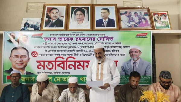 চয়ন চৌধুরী/সুনামগঞ্জ-আসন থেকে বিএনপির মনোনয়ন প্রত্যাশী জেলা বিএনপির সদস্য ও ধর্মপাশা উপজেলা বিএনপির সাবেক সভাপতি আব্দুল মোতালিব খান সাংবাদিকদের সাথে মতবিনিময় করেছেন।শুক্রবার দুপুর ১২টায় উপজেলা সদরের উকিলপাড়া এলাকায় নিজ বাসভবনে ...বিস্তারিত পড়ুন