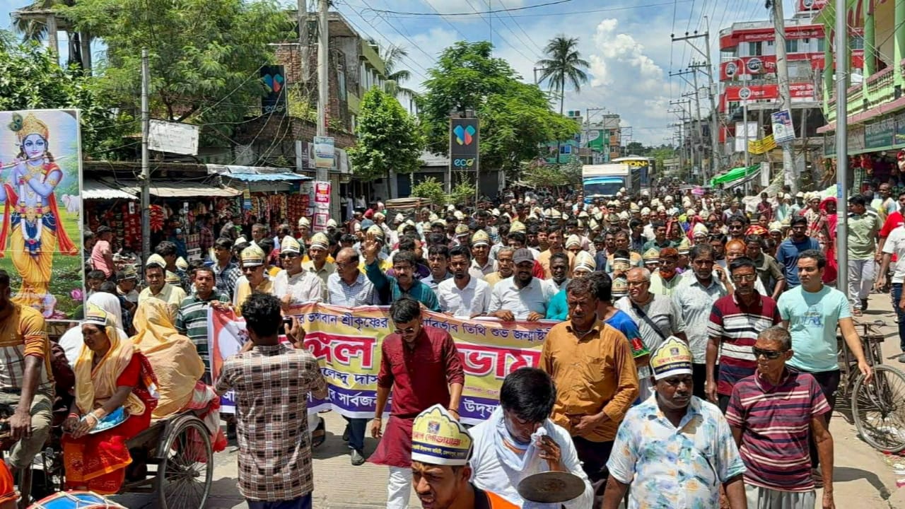 পরেশ দেবনাথ(নিজস্ব প্রতিনিধি)কেশবপুরে ব্যাপক উৎসাহ উদ্দীপনা, ধর্মীয় ভাবগাম্বীর্য ও আনন্দ উৎসবের মধ্য দিয়ে যুগাবতার ভগবান শ্রীকৃষ্ণের আবির্ভাব তিথি শুভ জন্মষ্টমী উদযাপন করা হয়েছে। শুভ জন্মাষ্টমী যা “কৃষ্ণ জন্মাষ্টমী” নামেও পরিচিত।শনিবার (১৬ আগস্সট-২৫) সকালে কেশবপুর সার্বজনীন জন্মষ্টমী উদযাপন কমিটির উদ্যোগে বনার্ঢ্য মঙ্গল শোভাযাত্রা, শ্রী শ্রী গীতা পূজা, গীতা পাঠ, ধর্মীয় সংগীত, চিত্রাংকন, মঙ্গল প্রদীপ প্রজ্জ্বলন ও আলোচনা সভা ও প্রসাদ বিতরণ করা হয়েছে। বিভিন্ন ইউনিয়ন থেকে সনাতন ধর্মাবলম্বী মানুষেরা বাদ্যযন্ত্র সহকারে মিছিল নিয়ে পূজা উদযাপন পরিষদ ও পূজা উদযাপন ফ্রন্টের ধর্মীয় সভাস্থলে হাজির হন। বনার্ঢ্য শোভাযাত্রাটি কেশবপুর সার্বজনীন শ্রীগঞ্জ কালিতলা মন্দির প্রাঙ্গণ থেকে শুরু হয়ে বিভিন্ন সাজে সজ্জিত কৃষ্ণ ভক্তরা নেচে গেয়ে বাদ্য বাজনা বাজিয়ে শহরের প্রধান প্রধান সড়ক প্রদক্ষিণ করে ওই স্থানে এসে শেষ হয়। তীব্র রোদের উত্তাপ উপেক্ষা করে এসময় রাস্তার দুধারে অসংখ্য মানুষজন তা উপভোগ করে। সনাতন নারীরা উলুধ্বনি দিয়ে মিছিলকে স্বাগত জানায়। শঙ্খ ধ্বনি আর ঢাকঢোলের বাদ্য বাজনা নিয়ে উৎসবমুখর পরিবেশে মিছিলে অংশ নেন ভক্তবৃন্দরা। শিশু, মহিলা, বৃদ্ধ থেকে শুরু করে বিভিন্ন বয়সের মানুষের সরব অংশগ্রহণ দেখে মনে হয়েছে, যেন কৃষ্ণ প্রেমের এক অদৃশ্য টানে ছুটে চলেছেন তারা শেকড়ের সন্ধানে।পূজা উদযাপন পরিষদের আলোচনা সভা ও মঙ্গল শোভযাত্রার অগ্রভাগে প্রধান অতিথি ছিলেন, কেন্দ্রীয় বিএনপির সদস্য ও কেশবপুর উপজেলা বিএনপির সভাপতি আবুল হোসেন আজাদ এবং পূজা উদযাপন ফ্রন্টের আলোচনা সভা ও মঙ্গল শোভাযাত্রার অগ্রভাগে থেকে নেতৃত্ব দেন, কেন্দ্রীয় বিএনপির সহধর্ম বিষয়ক সম্পাদক অমলেন্দু দাস অপু।সেখানে কেশবপুর সার্বজনীন জন্মষ্টমী উদযাপন কমিটির সভাপতি কৃষ্ণ গোপাল মুখার্জীর সভাপতিত্বে অনুষ্ঠিত আলোচনা সভায় সন্মানিত অতিথির বক্তব্য দেন, উপজেলা জামায়াতে ইসলামীর আমির অধ্যাপক মোক্তার আলী, বিশেষ অতিথির বক্তব্য দেন,উপজেলা বিএনপির সহ-সভাপতি মাসুদুজ্জামান মাসুদ, পৌর জামায়াতের আমির প্রভাষক জাকির হোসেন, জামায়াত নেতা তাজাম্মুল ইসলাম দিপু, ঢাবিয়ান কেশবপুর শাখার সাধারণ সম্পাদক কামরুজ্জামান হোসেন, সহকারী অধ্যাপক কানাইলাল ভট্টাচার্য্য, এনসিপির সন্ময়নক সম্রাট হোসেন, বৈষম্যবিরোধী ছাত্র আন্দোলনের প্রতিনিধি মিরাজ বিশ্বাস। স্বাগত বক্তব্য দেন, জন্মষ্টমী উদযাপন কমিটির সদস্য সচিব মলয় বসু। অনুষ্ঠান পরিচালনা করেন, জন্মষ্টমী উদযাপন কমিটির সমন্বয়ক উৎপল দে ও সদস্য প্রভাষক সাধন দাস।শ্রীকৃষ্ণের শুভ জন্মাষ্টমী উপলক্ষে সনাতন ধর্মাবলম্বীরা ধর্মীয় ভাবগা
