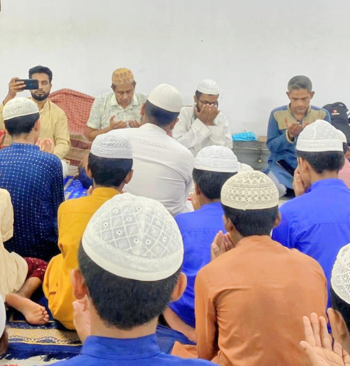 আব্দুর রশিদ /বাংলাদেশ জাতীয়তাবাদী দল-বিএনপির চেয়ারপার্সন, সাবেক প্রধানমন্ত্রী, দেশনেত্রী বেগম খালেদা জিয়ার ৮০ তম জন্মবার্ষিকী উপলক্ষ্যে সুস্থতা ও দীর্ঘায়ু কামনায় বাংলাদেশ জাতীয়তাবাদী দল-বিএনপি ও জাতীয়তাবাদী তাঁতীদল কেন্দ্র ঘোষিত কর্মসূচির আলোকে সাতক্ষীরা পৌর ও সদর উপজেলা তাঁতীদলের আয়োজনে ১৬ আগষ্ট'২০২৫ তারিখ শনিবার এশার নামাজের পর শহরের এক হাফেজীয়া মাদ্রাসায় পবিত্র কোরআন ও হাদিস শিক্ষায় অধ্যায়ানরত শত শত শিশু ও হুজুরদের উপস্থিতিতে দোয়া অনুষ্ঠান অনুষ্ঠিত হয়েছে।উক্ত দোয়া অনুষ্ঠানে উপস্থিত ছিলেন সাতক্ষীরা জেলা তাঁতীদলের আহ্বায়ক হাসান শাহরিয়ার রিপন, সিনিয়র যুগ্ম আহ্বায়ক শেখ মাহমুদুল ইসলাম বুলবুল, পৌর তাঁতীদলের আহ্বায়ক সাজ্জাদ হোসেন লাল্টু, সদর উপজেলা তাঁতীদলের আহ্বায়ক মোঃ সাহেব আলী, সদস্য সচিব নাহিদ হাসান টিপু, পৌর তাঁতীদলের সদস্য সচিব নাজমুল হাসান, যুগ্ম আহ্বায়ক যথাক্রমে মোঃ জাহিদুল ইসলাম, গোরা, আরিফ সহ পৌর ও সদর উপজেলা তাঁতীদলের বিভিন্ন পর্যায়ের নেতৃবৃন্দ।দোয়া অনুষ্ঠান পরিচালনা করেন হাফেজ মাওলানা মোঃ মাসুম বিল্লাহ।দোয়া অনুষ্ঠানে বিএনপির চেয়ারপার্সন, সাবেক প্রধানমন্ত্রী, দেশনেত্রী বেগম খালেদা জিয়ার সুস্থতা ও নেক হায়াত কামনা করা। মহান স্বাধীনতার ঘোষক, বিএনপির প্রতিষ্ঠাতা শহীদ প্রেসিডেন্ট জিয়াউর রহমান ও মরহুম আরাফাত রহমান কোকোসহ ১৯৭১ সালে স্বাধীনতা যুদ্ধে সকল শহীদ এবং ২০২৪ এর গণ-অভ্যুত্থানে ফ্যাসিস্ট আওয়ামী সরকারের পতনের আন্দোলনে সকল শহীদদের রুহের মাগফেরাত কামনা করে দোয়া করা হয়। এছাড়াও মহান স্বাধীনতা যুদ্ধে ও ২৪ এর গণ-অভ্যুত্থানে সকল আহতদের জন্য দোয়া চাওয়া হয়। এবং দেশের সার্বিক কল্যাণে দোয়া চাওয়া হয়েছে।