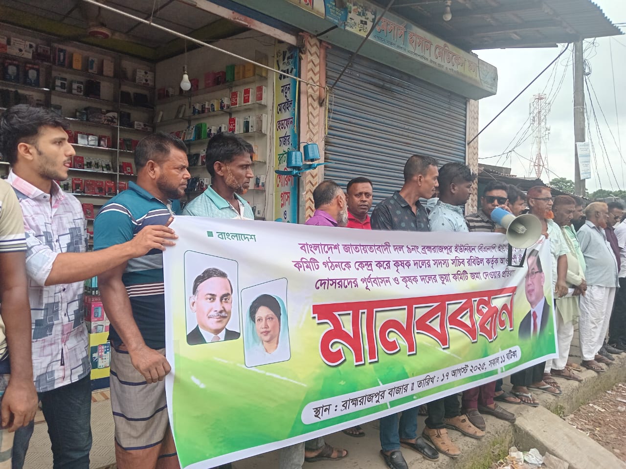 আব্দুর রশিদ/সাতক্ষীরা সদর উপজেলার ৯নং ব্রহ্মরাজপুর ইউনিয়নে বিএনপির ইউনিয়ন কমিটি গঠনকে কেন্দ্র করে কৃষক দলের সদস্য সচিব রবিউল ইসলামের বিরুদ্ধে আওয়ামী লীগ দোসরদের পূর্ণবাসন ও ভুয়া কমিটি জমা দেওয়ার অভিযোগ উঠেছে। এ অভিযোগের প্রতিবাদে মানববন্ধন কর্মসূচি পালন করেছে স্থানীয় নেতাকর্মীরা।রোববার (১৭ আগস্ট) সকাল ১১টায় ব্রহ্মরাজপুর বাজারে এ মানববন্ধন অনুষ্ঠিত হয়। মানববন্ধনে বক্তব্য রাখেন ব্রহ্মরাজপুর ইউনিয়ন বিএনপির আহ্বায়ক আবু হাসান, সদস্য সচিব নুরুল ইসলাম বাবু, জেলা তরুণ দলের সদস্য সচিব আবুল বাসার, সাতক্ষীরা সরকারি কলেজ ছাত্রদলের সহ-সভাপতি ফয়সাল ইকবালসহ ইউনিয়ন বিএনপির সাবেক ও বর্তমান নেতৃবৃন্দ।বক্তারা অভিযোগ করেন, কৃষক দলের সদস্য সচিব রবিউল ইসলাম আওয়ামী লীগ দোসরদের নিয়ে ভুয়া কৃষক দল কমিটি গঠন করে জমা দিয়েছেন। এতে বিএনপি ও কৃষক দলের ত্যাগী নেতাকর্মীরা বঞ্চিত হয়েছেন। বক্তারা অবিলম্বে ভুয়া কমিটি বাতিল করে যোগ্য ও ত্যাগী নেতাকর্মীদের সমন্বয়ে নতুন কমিটি গঠনের দাবি জানান।মানববন্ধনে বিএনপি ও অঙ্গসংগঠনের শতাধিক নেতাকর্মী অংশগ্রহণ করেন।