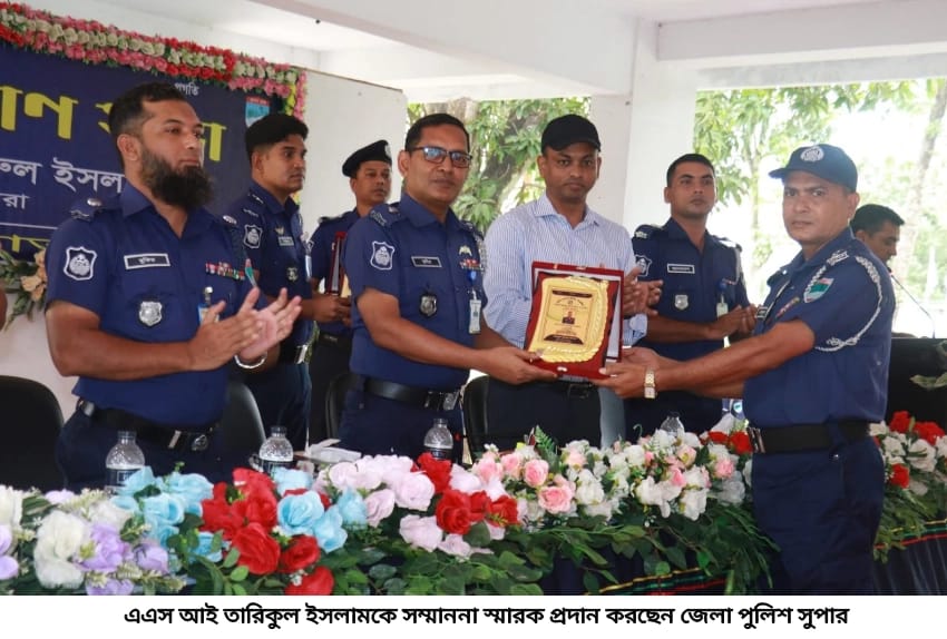 আব্দুর রশিদ/আশাশুনি থানার উপ-পরিদর্শক (এএসআই) মোঃ তারিকুল ইসলাম (নিরস্ত্র) জেলার শ্রেষ্ঠ এএস আই এস এম নির্বাচিত হয়েছেন। (১৬ আগস্ট) রবিবার জেলা মাসিক কল্যাণ সভায় পুলিশ সুপার মোহাম্মদ মনিরুল ইসলাম আনুষ্ঠানিকভাবে এএস আই এস এম তারিকুল ইসলামকে পুরুস্কার প্রদান করেন। গত জুলাই মাসে আশাশুনি থানায় অধিক হারে সাজাপ্রাপ্ত, গ্রেফতারী পরোয়ানা তামিল সহ মাদকদ্রব্য উদ্ধার, নিয়মিত মামলা তদন্ত করে তার রহস্য উদঘাটনের স্বীকৃতিস্বরূপ তাকে এ সম্মাননা দেওয়া হয়।এছাড়া এএস আই এস এম তারিকুল ইসলাম বিভিন্ন থানায় কর্মরত থাকাকালীন সময় একাধিকবার এই শ্রেষ্ঠত্বের পুরস্কারও অর্জন করেছিলেন। আশাশুনি থানার ভারপ্রাপ্ত কর্মকর্তা (ওসি) মোঃ সামসুল আরেফিনের দিক নির্দেশনায় প্রতিনিয়ত থানা পুলিশের এই চৌকস পুলিশ কর্মকর্তা এএস আই এস এম মোঃ তারিকুল ইসলাম গত ২৮/০৪/২৫ ইং তারিখে যোগদানের পর থেকে থানায় আইনশৃঙ্খলা রক্ষার পাশাপাশি বিভিন্ন কার্যক্রমে সফলতা অর্জন করে যাচ্ছেন।