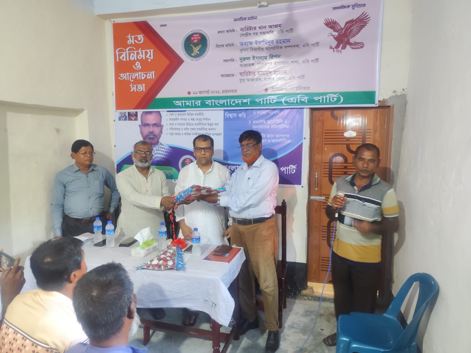 মঙ্গলবার (১৯ আগস্ট-২৫) বিকেলে উপজেলার পুরাতন গরুহাট সংলগ্ন নিজস্ব কার্যালয়ে মত বিনিময় সভায় এবি পার্টির যশোর জেলার যুগ্ম-আহবায়ক ও কেশবপুর উপজেলা শাখার আহবায়ক নুরুল ইসলাম রিপন-এর সভাপতিত্বে এবং সাংবাদিক শেখ শাহীন-এর সঞ্চালনায় প্রধান অতিথির বক্তৃতা করেন, এবি পার্টির কেন্দ্রীয় সহ-সভাপতি ব্যারিস্টার খান আজম।শুভেচ্ছা বক্তব্য রাখেন, এবি পার্টির যশোর জেলার যুগ্ম-আহবায়ক সম্ভাব্য সংসদ সদস্য পদপ্রার্থী ব্যারিস্টার মাহমুদ হাসান। তিনি তার বক্তব্যে কেশবপুর উপজেলার দীর্ঘদিনের বিভিন্ন সমস্যা ও তার সমাধানে এবি পার্টির পরিকল্পনার কথা তুলে ধরেন এবং সততা ও নিষ্ঠার সাথে উপজেলার মানুষের সেবা করার প্রতিশ্রুতি দেন। তিনি আরও বলেন, আমার বাংলাদেশ পার্টি নতুন দল হিসাবে সবসময় জনগণের পাশে থাকার অঙ্গীকার নিয়ে রাজনীতি করবে। আমাদের আজকের মতবিনিময় সভার মূল উদ্দেশ্য হলো, আপনাদের কথা শোনা, আপনাদের সমস্যাগুলো জানা এবং আমাদের দলের নীতি ও আদর্শ আপনাদের কাছে তুলে ধরা।" তিনি আরও বলেন, আমাদের লক্ষ্যঃ সেবা ও মূল্যবোধ ভিত্তিক রাজনীতি, অভ্যন্তরীণ গণতন্ত্র ও স্বচ্ছ নেতৃত্ব নির্বাচন, মেধা ও সততার ভিত্তিতে রাজনীতিকে উন্মুক্ত করা, পরিবারতন্ত্র ও ব্যক্তি পূজার রাজনীতির অবসান ও নতুন প্রজনন্ম ও অভিজ্ঞ নাগরিকদের সক্রিয় অংশগ্রহণ।বিশেষ অতিথি ছিলেন, এবি পার্টির খুলনা বিভাগীয় সাংগঠনিক সম্পাদক ও যশোর জেলার যুগ্ম আহবায়ক অধ্যক্ষ ইয়ামিনুর রহমান। অন্যান্যদের মধ্যে বক্তব্য রাখেন, কেশবপুর উপজেলা খেলাঘর আসরের সভাপতি আব্দুল মজিদ (বড়ভাই), মঙ্গলকোট সেবা সমাজ কল্যাণ সংস্থার পরিচালক এস এম কোরবান আলী, বিশিষ্ট সমাজ সেবক ডাঃ আবুবকর সিদ্দিকী প্রমূখ। অনুষ্ঠানে বিভিন্ন ইউনিয়ন থেকে শতাধিক ব্যক্তি এ অনুষ্ঠানে যোগদান করেন।