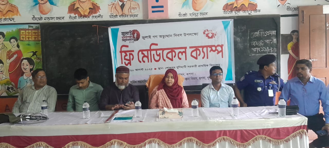 আজিজুল ইসলাম(স্টাফ রিপোর্টার)জুলাই গণঅভ্যুত্থান দিবস উপলক্ষে ফ্রি মেডিকেল ক্যাম্প রূপসা উপজেলা প্রশাসন আয়োজনে ২০ আগস্ট সকাল ১০টায় শোলপুর যুগিহাটী সরকারি প্রাথমিক বিদ্যালয় প্রাঙ্গনে অনুষ্ঠিত হয়।উপস্থিত ছাত্র সমন্বয়করা জানান, মেডিকেল ক্যাম্পিং এর মূল উদ্দেশ্য হলো- প্রান্তিক পর্যায়ে স্বাস্থ্যসেবার মান পৌছিয়ে দেওয়া। তাদের কী সমস্যা রয়েছে এবং তাদেরকে কীভাবে আরও বেশি সহযোগিতা করা যায় ইত্যাদি বিষয় অনুধাবন করা এবং সাধারণ মানুষকে স্বাস্থ্যসেবা প্রদান করাই আমাদের এই মেডিকেল ক্যাম্প।উপজেলা নির্বাহী অফিসার সানজিদা রিক্তা জানান, “খুলনা জেলা প্রশাসক (ডিসি)” নির্দেশে রূপসা উপজেলায় এই মেডিকেল ক্যাম্পিং অনুষ্ঠিত এবং সুন্দরভাবে সম্পন্ন হয়েছে।উক্ত মেডিকেল ক্যাম্পিং-এ উপজেলা স্বাস্থ্য ও পঃ পঃ কর্মকর্তা ডাঃ মোহাম্মদ মাজেদুল হক কাওসার এর নেতৃত্বে স্বাস্থ্য কমপ্লেক্সের ভারপ্রাপ্ত (আরএমও) ডা: কুদরাত আলী শেখ এবং (এস.এ.সিএমও) মেহেদী হাসান ও হিরামুন নাহারগণ উপস্থিত রোগীর রোগ নির্ণয়ের জন্য ব্লাড গ্রুপিং, প্রেসার ও ডায়াবেটিস চেক শেষে ফ্রিতে ঔষধ প্রদান করেছেন। প্রদত্ত ঔষধের মধ্যে রয়েছে- এন্টাসিড, ভিটামিন- সি, ক্যালসিয়াম, প্যারাসিটামল, মেট্রোনিডাজল, ওমেপ্রাজল, অ্যাজিথ্রোমাইসিন, ডমপেরিডন এবং সেটিরিজিন।এসময় উপস্থিত ছিলেন- উক্ত বিদ্যালয়ের প্রধান শিক্ষক শীপ্রা রানী দাশ, আইচগাতী ইউনিয়ন ভারপ্রাপ্ত চেয়ারম্যান মো. মাসুম বিল্লাহ, জেলা বিএনপির সাবেক সদস্য শেখ শফিকুল ইসলাম, ছাত্র সমন্বয়ক তামিম হাসান লিয়ন, শামীম ও মিরাজ সহ অনেকেই। মেডিকেল ক্যাম্পিং সারাদিন চলমান ছিল বলে জানা গেছে।