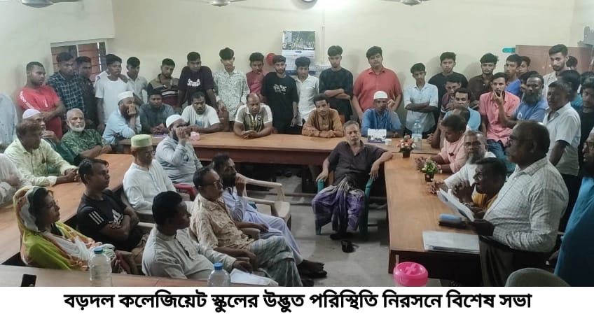 ওমর ফারুক মুকুল /সাতক্ষীরার আশাশুনি উপজেলার বড়দল আফতাব উদ্দীন কলেজিয়েট স্কুলের ভারপ্রাপ্ত অধ্যক্ষ পদ নিয়ে উদ্ভুত পরিস্থিতি নিরসন কল্পে বিশেষ মতবিনিময় সভা অনুষ্ঠিত হয়েছে। উভয় পক্ষের ডকুমেন্টস দেখা ও বক্তব্য শোনার পর নের্তৃবৃন্দ সহকারী অধ্যাপক বাবলুর রহমানকে পরবর্তী সিদ্ধান্ত না জানান পর্যন্ত ভারপ্রাপ্ত অধ্যক্ষের দায়িত্ব চালিয়ে যাওয়ার সিদ্ধান্তের কথা জানানো হয়। সাথে সাথে মহামান্য হাইকোর্টে মামলা ও রায়ের কাগজপত্রসহ বিভিন্ন দপ্তরে দায়েরকৃত ও দপ্তর থেকে প্রেরিত চিঠি দ্রুত সময়ের মধ্যে নের্তৃবৃন্দের কাছে জমা দিতে উভয় পক্ষকে বলা হয়।আশাশুনি উপজেলা জামায়াতের নায়েবে আমীর নুরুল আফছার মুরতাজা ও অন্যান্য নেতৃবৃন্দ, উপজেলা বিএনপির সাবেক সদস্য সচিব মশিউল হুদা তুহিন ও অন্যান্য নেতৃবৃন্দ স্কুলে বিশেষ সভায় মিলিত হন। সভায় ভারপ্রাপ্ত প্রিন্সিপ্যাল সহকারী অধ্যাপক বাবলুর রহমান, অপর ভারপ্রাপ্ত অধ্যক্ষ দাবীদার সহকারী অধ্যাপক মোহাম্মদ আলী, বর্তমান কমিটির সদস্য, শিক্ষক-কর্মচারী, জমিদাতা, প্রতিষ্ঠাতার পুত্র, অভিভাবক, কলেজ শাখার শিক্ষার্থী, সাংবাদিক ও বিভিন্ন ব্যক্তিবর্গ উপস্থিত ছিলেন।