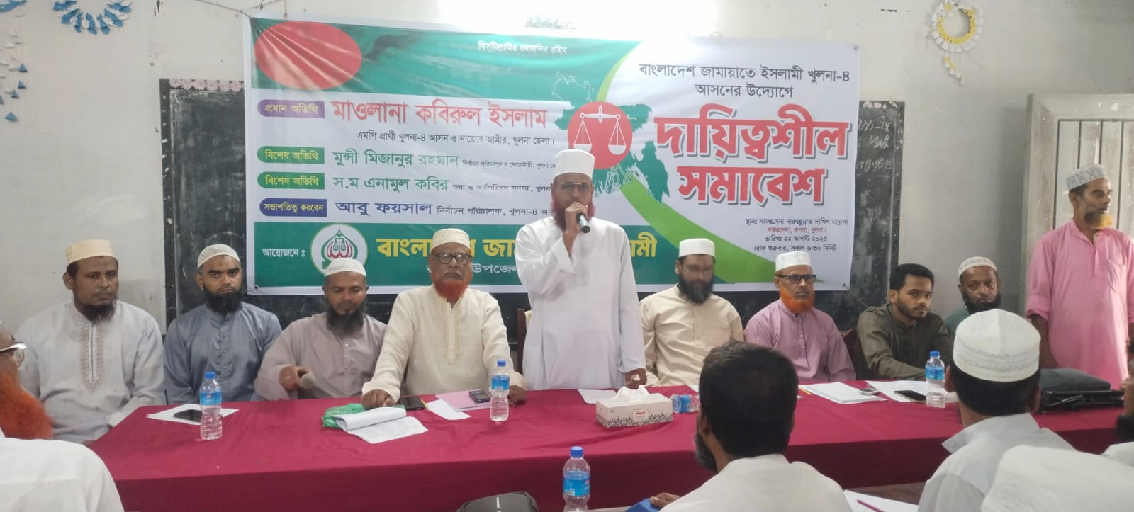 আজিজুল ইসলাম(স্টাফ রিপোর্টার)বাংলাদেশ জামায়াতে ইসলামী খুলনা-৪ আসনের ( রূপসা-তেরোখাদা দিঘলিয়া) নির্বাচন পরিচালনা কমিটির উদ্যোগে দায়িত্বশীল সমাবেশ অনুষ্ঠিত।উপজেলার সামন্তসেনা সিদ্দিকিয়া দাখিল মাদ্রাসা মিলনায়তনে ২২ আগস্ট শুক্রবার সকালে এ সমাবেশ অনুষ্ঠিত হয়।অনুষ্ঠানে প্রধান অতিথি বক্তব্য রাখেন বাংলাদেশ জামায়াতে ইসলামী খুলনা জেলা শাখার নায়েবে আমির ও জামায়াতে ইসলামী মনোনীত খুলনা ৪ আসনের সংসদ সদস্য পদপ্রার্থী অধ্যক্ষ মাওলানা কবিরুল ইসলাম। তিনি বলেন পিয়ার পদ্ধতিতে নিয়ে কে অনঢ় থাকলো বা কে থাকলো না সেটি কোন বিষয় না । আমরা আমাদের ন্যায্য দাবি তুলে ধরেছি। হয় এই নির্বাচনে আমাদের দাবি মানতে হবে। মানবেন কি মানবেন না এ চর্চা থাকতে হবে ।কেয়ারটেকার সরকারও এক সময় আমাদের দাবি ছিল কেয়ার টেকার সরকার ফ্যাসিস্ট স্বৈরাচার পলাতক সাবেক সরকার বাতিল করেছিল, আমরা আদালতের মাধ্যমে সেটিকে পুনরুদ্ধার করেছি।তিনি আরো বলেন এখনকার বাস্তবতায় আমরা আগামী সংসদ নির্বাচনে প্রিয়ার পদ্ধতি দাবি করছি, পিয়ার পদ্ধতিতে নির্বাচন হলে ভোটের অংশ হিসেবে দল থেকে মেধাবীরা সংসদে প্রতিনিধিত্ব করার সুযোগ পাবে।খুলনা ৪ আসনের নির্বাচন পরিচালনা কমিটির সভাপতি আবু ফয়সালের সভাপতিত্বে বক্তব্য রাখেন বিশেষ অতিথির বক্তব্য রাখেন বাংলাদেশের জামায়াতে ইসলামী খুলনা জেলা শাখার সেক্রেটারি ও জেলা নির্বাচন পরিচালনা কমিটির পরিচালক মুন্সী মিজানুর রহমান, জেলার শুরা ও কর্ম পরিষদ সদস্য স.ম এনামুল হক, রূপসা উপজেলা জামায়াতের আমির মাওলানা লবিবুল ইসলাম।অনুষ্ঠানে রূপসা উপজেলা জামায়াতে ইসলামীর সেক্রেটারি ও খুলনা ৪ আসনের নির্বাচন পরিচালনা কমিটির সদস্য সচিব হাবিবুল্লাহ ইমনের সঞ্চালনায় আরো বক্তব্য রাখেন উপজেলা জামায়াতের নায়েবে আমির ডাক্তার রেজাউল কবির খান, বাংলাদেশ শ্রমিক কল্যাণ ফেডারেশন খুলনা জেলা শাখার সেক্রেটারি নাজিমউদ্দিন, অনুষ্ঠানে ইসলামী সংগীত পরিবেশন করেন সত্যের স্বাক্ষ শিল্প গোষ্ঠীর সদস্যবৃন্দ।এ সময় অন্যানের মধ্যে উপস্থিত ছিলেন