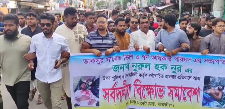 আব্দুর রশিদ/ডাকসুর সাবেক ভিপি ও গণধিকার পরিষদের সভাপতি নুরুল হক নূর এর উপর পুলিশ ও সেনাবাহিনী কর্তৃক বর্বরোচিত হামলার প্রতিবাদে সাতক্ষীরায় সর্বদলীয় বিক্ষোভ মিছিল অনুষ্ঠিত হয়েছে।শনিবার (৩০ আগস্ট) বিকালে যুব অধিকার পরিষদের জেলা সভাপতি তবিবুর রহমান এর নেতৃত্বে সাতক্ষীরা নিউ মার্কেট মোড় হতে বিক্ষোভ মিছিলটি শুরু হয়ে খুলনা রোডমোড় আসিফ চত্বরে শেষ করে সংক্ষিপ্ত বিক্ষোভ সমাবেশ অনুষ্ঠিত হয়। এ সময় বক্তব্য রাখেন গণধিকার পরিষদ সাতক্ষীরার সাবেক যুগ্ন আহবায়ক ইয়াসিন আরাফাত, গণধিকার পরিষদ নেতা হাসানুর রহমান হাসান, ছাত্রর অধিকার পরিষদের সাবেক জেলা সভাপতি ইমরান হোসেন ইমু, যুব অধিকার পরিষদ সাতক্ষীরা জেলার সাধারণ সম্পাদক আজিবুর রহমান, ছাত্রর অধিকার পরিষদের জেলা সভাপতি সারাফাত হোসেন, সাধারণ সম্পাদক আব্দুল আজিজ নয়ন,শ্রমিক অধিকার পরিষদের জেলা সাধারণ সম্পাদক আশরাফুজ্জামান হাবিব, আপ বাংলাদেশ সাতক্ষীরা জেলার আহবায়ক আক্তারুল ইসলাম আক্তার, সদস্য সচিব আবিদ হাসান, বৈষম্য বিরোধী ছাত্র আন্দোলন সাতক্ষীরা জেলার সাবেক আহবায়ক আরাফাত হোসাইনসহ বিভিন্ন রাজনৈতিক দলের নেতৃবৃন্দ।সংক্ষিপ্ত বিক্ষোভ সমাবেশের বক্তারা বলেন, গতকাল শুক্রবার সন্ধ্যায় গণধিকার পরিষদের প্রেস ব্রিফিং অনুষ্ঠানে আওয়ামী লীগ,জাতীয় পার্টি, পুলিশ ও সেনাবাহিনী কর্তৃক পরিকল্পিতভাবে বর্বরোচিত হামলা চালিয়েছে।আমরা এর তীব্র নিন্দা ও প্রতিবাদ জানাই। যারা এই বর্বরোচিত হামলার সাথে জড়িত তাদেরকে দ্রুত গ্রেফতার করে বিচারের আওতায় আনতে হবে। এ সময় বক্তারা আরো বলেন জাতীয় পার্টি কে নিষিদ্ধ করতে হবে। জাতীয় পার্টির উপর ভর করে আওয়ামী লীগ পুনর্বাসন করা কোনভাবে মেনে নেওয়া হবে না।