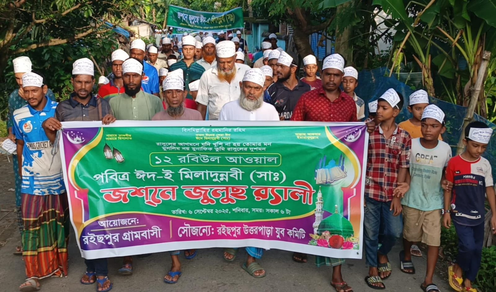 আব্দুর রশিদ/পবিত্র ঈদে মিলাদুন্নবী (সা.) উপলক্ষে সাতক্ষীরার পৌর সাত নাম্বার ওয়ার্ড রইচপুরে এক বর্ণাঢ্য জশনে জুলুস র্যালি অনুষ্ঠিত হয়েছে। ১২ রবিউল আউয়াল মহানবী হযরত মুহাম্মদ (সা.)-এর জন্ম ও ওফাত দিবস স্মরণে এই র্যালিটি আয়োজন করে রইচপুর গ্রামবাসী এবং রইচপুর উত্তরপাড়া যুব কমিটি।আজ ০৬ সেপ্টেম্বর শনিবার সকাল ৬টায় সাতক্ষীরার রইচপুর আব্দুর রাজ্জাকের মোড় থেকে র্যালিটি শুরু হয়। এতে অংশগ্রহণকারীরা 'রাসুলের আগমনে খুশি হয়েছি' স্লোগান দিতে দিতে সাতক্ষীরার পৌর সাত নম্বর ওয়ার্ড রইচপুর গ্রামের প্রধান প্রধান সড়ক প্রদক্ষিণ করে। র্যালিটি পুনরায় আব্দুর রাজ্জাকের মোড়ে এসে শেষ হয়। এতে শিশু, কিশোর, যুবক, বৃদ্ধ নির্বিশেষে বিভিন্ন বয়সী মানুষ অংশ নেয়। অনেকের হাতে ছিল বিভিন্ন ইসলামিক পতাকা ও ব্যানার, যাতে মহানবী (সা.)-এর শানে লেখা বিভিন্ন বার্তা শোভা পাচ্ছিল।র্যালি শেষে সংক্ষিপ্ত আলোচনায় বক্তারা বলেন মহানবী (সা.)-এর আদর্শ ও জীবনাদর্শ নিয়ে আলোচনা করেন। তাঁরা বলেন, মহানবী (সা.)-এর দেখানো পথে চললে ইহকাল ও পরকালে শান্তি লাভ সম্ভব। তাঁর সুমহান আদর্শ অনুসরণ করে সমাজকে আরও সুন্দর করে গড়ে তোলার জন্য সকলের প্রতি আহ্বান জানানো হয়।অনুষ্ঠানে বক্তব্য রাখেন সাবেক সাধারণ সম্পাদক সাতক্ষীরা পৌর জাতীয়তাবাদী স্বেচ্ছাসেবক দল ও বর্তমান যুগ্ম আহ্বায়ক সাতক্ষীরা জেলা শাখা মহসিনার আলম, পৌর সাত নাম্বার ওয়ার্ডের জামাত আমির হাফেজ নুরুল হক, পশ্চিম পাড়া মসজিদের ইমাম হাফেজ আব্দুল্লাহ আল বাকি, ঘোনা ইউনিয়ন মাধ্যমিক বিদ্যালয়ের শিক্ষক মাওলানা আজগার আলী, সর্বজন শ্রদ্ধেয় ব্যক্তিত্ব মোহাম্মদ আলী হুজুর, এবং মাহবুব আলম। এছাড়াও, গ্রামের গণ্যমান্য ব্যক্তিবর্গ এবং ধর্মপ্রাণ মুসলমানরা উপস্থিত ছিলেন।অনুষ্ঠানের দোয়া ও মোনাজাত পরিচালনা করেন পশ্চিম পাড়া মসজিদের ইমাম হাফেজ আব্দুল্লাহ আল বাকি। র্যালি ও সামগ্রিক অনুষ্ঠান সঞ্চালনা করেন মাহবুব আলম। র্যালিতে অংশ নেওয়া জনতা এ ধরনের আয়োজন নিয়মিত করার জন্য আয়োজকদের প্রতি কৃতজ্ঞতা প্রকাশ করেন।