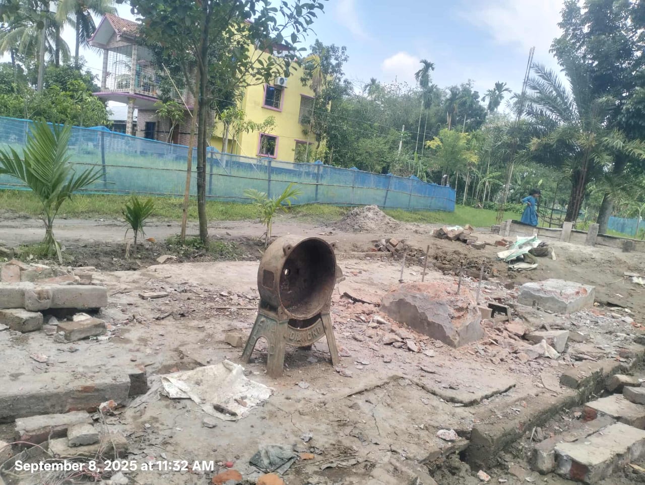 শাহ আলম কৌশিক(ঈশ্বরগঞ্জ,ময়মনসিংহ)ময়মনসিংহের ঈশ্বরগঞ্জে জমি দখলকে কেন্দ্র করে ঘটে গেছে চাঞ্চল্যকর ঘটনা। প্রকাশ্যে দিনের আলোয় রাইসমিল ঘর ভাঙচুর, রাইসমিল লুটপাট, নারীকে হত্যার চেষ্টা সব মিলিয়ে গ্রামজুড়ে এখন আতঙ্ক আর ক্ষোভ।রোববার (৭ সেপ্টেম্বর) দুপুরে উপজেলার মগটুলা ইউনিয়নের নাউরি গ্রামে এ তাণ্ডব চালানো হয়। ভুক্তভোগী নাউরি গ্রামের নূরুল ইসলাম (৬৫) থানায় লিখিত অভিযোগ দায়ের করে পাঁচজনকে আসামি করেছেন। এদের নেতৃত্ব দেন একই গ্রামের মৃত্যু ছামছু উদ্দিনের ছেলে দুলাল মিয়া (৫২)।অভিযোগে জানা যায়, ওইদিন দুপুরে দুলাল মিয়া তার সহযোগীদের নিয়ে ধারালো অস্ত্র দা,কুড়াল,শাবল, কুদাল,হাতুড়ি,করাত ও লাঠিসোটা হাতে নিয়ে নূরুল ইসলামের পৈতৃক জমিতে হামলা চালায়। মুহূর্তের মধ্যেই তারা রাইসমিল ঘর ভেঙে যন্ত্রাংশ লুট করে নিয়ে যায়। শুধু তাই নয়,রাইসমিল ঘরের টিন ভাঙচুর করে পরিবারের সবাইকে হত্যার হুমকি দেয়।সবচেয়ে ভয়াবহ পরিস্থিতি তৈরি হয় যখন নূরুল ইসলামের ছেলের বউ লিমা আক্তার ভাঙচুরে বাধা দেন। অভিযোগ আছে, হামলাকারীরা তাকে হত্যার উদ্দেশ্যে তাড়া করে। প্রাণ বাঁচাতে লিমা আক্তার দৌড়ে ঘরে আশ্রয় নেন। এসময় হামলাকারীরা চিৎকার করে বলে তোর প্রাণ রাখবো না। এতে পুরো পরিবার চরম ভীতসন্ত্রস্ত হয়ে পড়ে।ঘটনার পর সরেজমিনে গেলে দেখা যায়, রাইসমিলের ভাঙা যন্ত্রাংশ ছড়িয়ে-ছিটিয়ে পড়ে আছে। ভিটেতে থাকা ইট খুলে নিয়ে যাচ্ছে প্রতিপক্ষের লোকজন। অন্যদিকে, সেই জায়গায় নতুন পাকা ঘর তুলতে ব্যস্ত দেখা যায় অভিযুক্ত দুলাল মিয়াকে।অভিযোগকারী নূরুল ইসলাম বলেন,এটা আমার পৈতৃক জমি। এখানে বহু বছর ধরে রাইসমিল চালাচ্ছি। রবিবার দুলাল লোকজন নিয়ে প্রকাশ্যে আমার রাইসমিল ঘর ভাঙচুর, মিল লুট করেছে। এখন পরিবার নিয়ে আতঙ্কে আছি। রাতে ঘুমোতে পারি না।অভিযুক্ত দুলাল মিয়ার সাথে কথা বললে তিনি জানান,মিলটা আমার জায়গায় ছিল। তাই আমি ভেঙে নিয়েছি।এ বিষয়ে ঈশ্বরগঞ্জ থানার (ওসি) ওবায়দুর রহমান বলেন, অভিযোগ হাতে পেয়েছি। তদন্ত করে আইনগত ব্যবস্থা নেওয়া হবে।