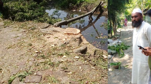 নিজস্ব প্রতিবেদক /খুলনা ডুমুরিয়ায় মাগুরাঘোনার দক্ষিণ আরশনগরে সরকারি রাস্তার ২টা সিরিজ গাছ আরশনগর ৫ নম্বর ওর্য়ার্ড জামায়েতর সভাপতির নির্দেশে কর্তন। এমন ঘটনা ঘটেছে ১৪ অক্টোবর মঙ্গলবার সকালের দিকে।কাঠ ব্যাবসায়ী নুরু শেখ এই গাছ ক্রয় করেছে বলে জানা যায়, স্থানীয় সুত্রে জানা গেছে ২ টা গাছের মুল্য সাড়ে ১২ হাজার টাকার মত যা ব্যাপারী অসাধু উপায়ে চাপে ফেলে ওর্য়ার্ড জামায়েতের সভাপতিকে ম্যানেজ করে যোগসাজশে গাছের মালিকের নিকট থোকে ৫ হাজার টাকা দামে ক্রয় করেছে।ঘটনাস্থলে গিয়ে দেখা যায় বড় বড় ২ টা গাছের গোড়া আছে গাছ নাই। এবং সাংবাদিকদের উপস্থিতির খবর পেয়ে দ্রুত কাটা গাছ নিয়ে ছটকে পড়ে ব্যাপারীরা, ও হাজির হয় আরশনগর ৫ নম্বর ওয়ার্ড জামায়েতের সভাপতি মোঃ ইব্রাহীম হোসেন এবং তিনি নিজে মুখে বলেন আমি গাছ কাটতে বলেছি। তিনি আরো বলেন আমাদের গ্রামের মসজিদের জাকাত ফান্ড আছে সেখান থেকে গরিব ও আসহায় মানুষের সাহায্য সহযোগীতা করে থাকি। গাছ বিক্রয় করা টাকা এই ফান্ডে জমা থাকবে।সরোজমীনে গিয়ে প্রকৃত গাছের মালিক মৃত হযরত সরদারের পুত্র মোঃ সোহরাব সরদারের সাথে কথা বলে জানা যায়, আমি গরিব মানুষ তারপরেও আমার স্ত্রী সন্তান সম্ভাবা যে কারণে আমার এই গাছ বিক্রয়ের জন্য দৌড়ঝাপ,আমি বিভিন্ন নেতাকর্মীর হাতে পায়ে ধরেছি গাছ বিক্রয়ের জন্য। আবশেষে মোঃ ইব্রাহীম মেম্বার এই গাছ বিক্রয়ের ব্যবস্থা করে দিয়েছে।এ বিষয়ে আরশনগর ৪ নম্বর ওয়ার্ড বিএনপির সংগঠনিক সম্পাদক মোঃ মহাতাপ শেখ সরকারি রাস্তার গাছ কর্তনের বাধা দিলে আরশনগর ৫ নম্বর ওয়ার্ড জামাতের সভাপতি মোঃ ইব্রাহিম হোসেন বলেন,কে বাধা দেবে তুলে নাও গাছ আমরা আছি।এদিকে খবর পেয়ে বয়ারসিং ভুমি অফিসের নায়েব মোঃ জাহাঙ্গীর আলম ঘটনাস্থল পরিদর্শন করেন এবং বলেন সরকারি সার্ভেয়ার দ্বারা জমি পরিমাপের পরে বুঝা যাবে গাছ সরকারি জায়গায় না ব্যাক্তি মালিকানা জায়গায় এর পরে আইনগত ব্যবস্থা গ্রহন করা হবে।
