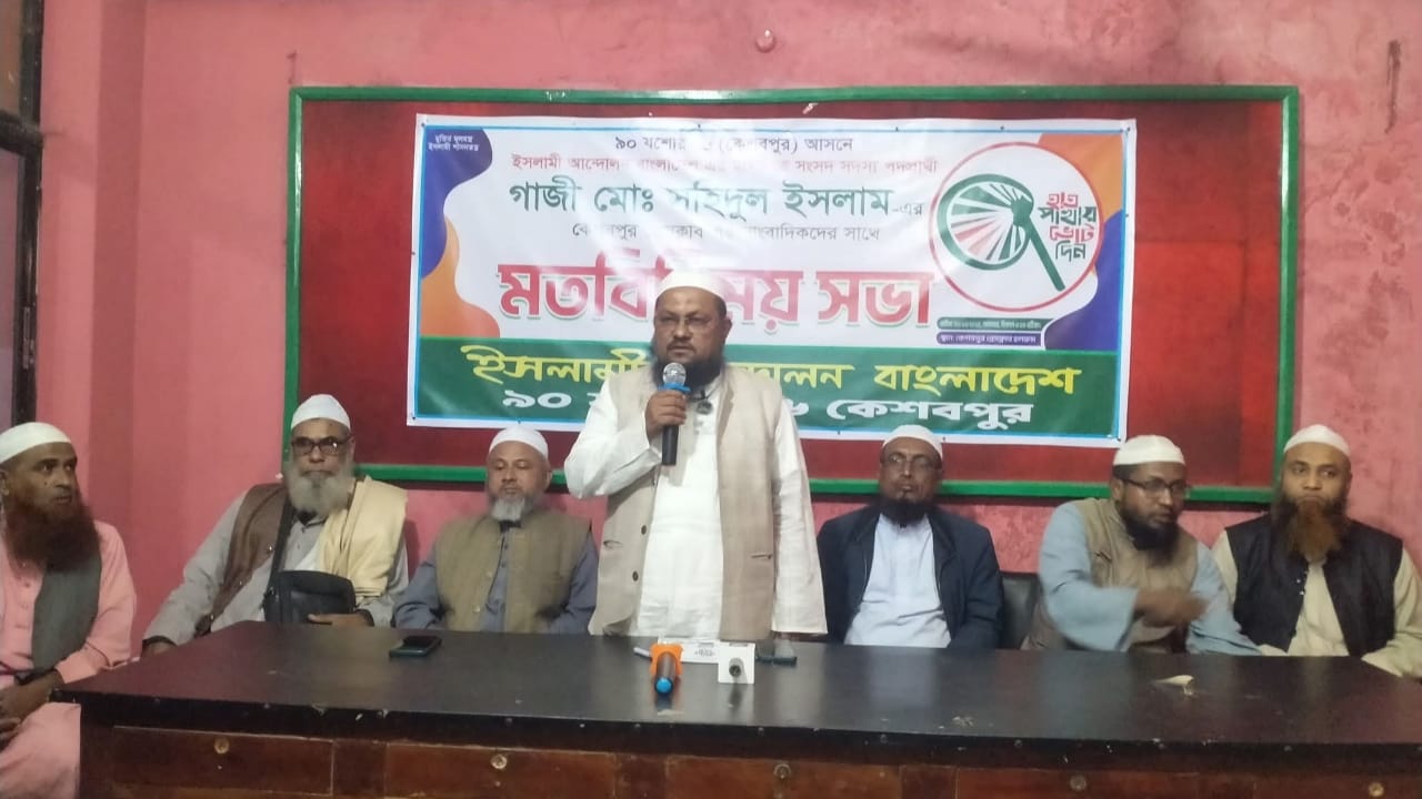 পরেশ দেবনাথ/ কেশেবপুরে সাংবাদিক দের সঙ্গে প্রেসক্লাবে সাংবাদিকদের সাথেম তবিনিময় করেন, যশোর-৬ (কেশবপুর) আসনের ইসলামী আন্দোলন বাংলাদেশ এর পাখা মার্কার মনোনীত প্রার্থী গাজী মোঃ শহিদুল ইসলাম। সোমবার (০৮ ডিসেম্বর-২৫) বিকেলে প্রেসক্লাবের হলরুমে দলের পক্ষ থেকে ওই সভার আয়োজন করা হয়। মতবিনিময়কালে গাজী মোঃ শহিদুল ইসলাম বলেন, ২০২৪ সালের ৫ আগস্টের আন্দোলনে সব থেকে বড় ভূমিকা পালন করেছে ইসলামী আন্দোলন বাংলাদেশ। আন্দোলনে ছাত্রদের ভূমিকার সুফল এখনও পুরোপুরি বাস্তবায়ন হয়নি। আগামীতে বাংলাদেশে ইসলামী জোট সরকার গঠন করতে পারলে সাংবাদিকরা নিরাপদে পেশাগত দায়িত্ব পালন করতে পারবেন। চাঁদাবাজ, খুনি, ধর্ষক ও মিথ্যাচারীদের কঠোর ভাবে দমন করা হবে। মতবিনিময়ে তিনি আরো বলেন, ইসলামী জোট সরকারে গেলে কেশবপুরের জলাবদ্ধতা, স্বাস্থ্যখাত, শিক্ষার গুনগতমান ও শিক্ষাপ্রতিষ্ঠানের অবকাঠামো উন্নয়নে ভূমিকা রাখবে। এ সময় তিনি ন্যায়ের প্রতি অবিচল থাকার আহবান করেন। মতবিনিময় সভায় উপস্থিত ছিলেন, ইসলামী আন্দোলন বাংলাদেশের কেশবপুর উপজেলা কমিটির সভাপতি মাওলানা সিরাজুল ইসলাম, সাধারণ সম্পাদক হাজী আব্দুল মান্নান, পৌর শাখার সভাপতি মাওলানা আবুল কাশেম, উপজেলা শাখার যুগ্ম সম্পাদক ডাক্তার আব্দুল লতিফ, হাত পাখার নির্বাচন পরিচালনা কমিটির আহবায়ক মুরাদ খান প্রমুখ। মতবিনিময়ে সাংবাদিকদের প্রশ্নের জবাবে গাজী মো: শহিদুল ইসলাম বলেন, ইসলামী জোট যাকে মনোনীত করবেন তিনি সে দলের প্রতীকেই ভোট করবেন। জোটের অন্যরা ওই প্রতীকের পক্ষেই কাজ করবেন।