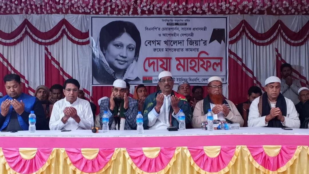 পরেশ দেবনাথ/যশোরের কেশবপুরে বিএনপির চেয়ারপারসন, সাবেক প্রধানমন্ত্রী ও আপোষহীন দেশনেত্রী বেগম খালেদা জিয়ার রুহের মাগফিরাত কামনায় দোয়া মাহফিল অনুষ্ঠিত হয়েছে। বৃহস্পতিবার (১৫ জানুয়ারি-২৬) বিকেলে উপজেলার সুফলাকাটি ইউনিয়ন বিএনপির উদ্যোগে ওই মাহফিল অনুষ্ঠিত হয়। ইউনিয়নের কলাগাছি বাজারে অনুষ্ঠিত দোয়া মাহফিলে প্রধান অতিথি হিসেবে উপস্থিত ছিলেন, বিএনপির জাতীয় নির্বাহী কমিটির সদস্য, উপজেলা বিএনপির সভাপতি ও যশোর-৬ আসনে বিএনপি মনোনীত প্রার্থী আলহাজ্ব আবুল হোসেন আাজাদ। বিশেষ অতিথি হিসেবে উপস্থিত ছিলেন, পৌর বিএনপির সভাপতি আলহাজ্ব আব্দুস সামাদ বিশ্বাস।এছাড়া উপজেলা বিএনপির সাবেক আহ্বায়ক মশিয়ার রহমান, সহ-সভাপতি ইউপি চেয়ারম্যান প্রভাষক আলাউদ্দিন আলা, সাংগঠনিক সম্পাদক হুমায়ুন কবির সুমন, পাঁজিয়া ইউনিয়ন বিএনপির সভাপতি সাবেক ইউপি চেয়ারম্যান মাস্টার মকবুল হোসেন মুকুল, সুফলাকাটি ইউনিয়ন বিএনপির সভাপতি মহিউদ্দীন, সাংগঠনিক সম্পাদক আহাদ আলী প্রমূখসহ ওই ইউনিয়ন, ইউনিয়নের ৯টি ওয়ার্ড বিএনপি ও তার অঙ্গ সংগঠনের বিভিন্ন পর্যায়ের নেতৃবৃন্দ উপস্থিত ছিলেন।