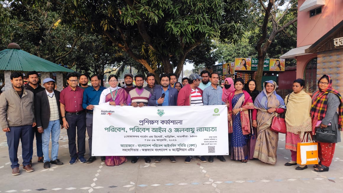 আব্দুর রশিদ(সাতক্ষীরা)সাতক্ষীরার মোজাফফর গার্ডেন এন্ড রিসোর্টে ‘জলবায়ু ন্যায়বিচারের জন্য নীল অর্থনীতি এবং অন্তর্ভুক্তিমূলক উন্নয়ন (বিআইডি ৪ সিজে)’ প্রকল্পের আওতায় দুই দিনব্যাপী এক নিবিড় প্রশিক্ষণ কর্মশালা সম্পন্ন হয়েছে। বাংলাদেশ পরিবেশ আইনবিদ সমিতি (বেলা)-এর উদ্যোগে গত ১৮ ও ১৯শে জানুয়ারি এই ‘পরিবেশ আইন ও জলবায়ু ন্যায্যতা পরিশিক্ষণ কর্মশালা’ অনুষ্ঠিত হয়।অনুষ্ঠানের উদ্বোধনী পর্বে স্বাগত বক্তব্য রাখেন বেলার খুলনা বিভাগীয় সমন্বয়কারী মাহফুজুর রহমান মুকুল। প্রশিক্ষণের উদ্দেশ্য ও বেলার সামগ্রিক কার্যক্রম নিয়ে বিস্তারিত আলোচনা করেন ঢাকা অফিসের প্রোগ্রাম ও ফিল্ড কোঅর্ডিনেটর এ এম এম মামুন।দুই দিনের বিভিন্ন অধিবেশনে উপকূলীয় পরিবেশ ও আইনগত সুরক্ষা নিয়ে বিশেষজ্ঞগণ আলোকপাত করেন। সুন্দরবন একাডেমীর নির্বাহী পরিচালক অধ্যাপক আনোয়ারুল কাদির ‘উপকূলীয় বন সংরক্ষণ ও ব্যবস্থাপনা: প্রেক্ষিত সুন্দরবন’ শীর্ষক সেশনে বনের প্রাতিষ্ঠানিক কাঠামো ও কৌশল তুলে ধরেন। বেলার রিসার্চ অফিসার রাইসুল হাসান ও বিভাগীয় সমন্বয়কারী মাহফুজুর রহমান মুকুল দক্ষিণ-পশ্চিম উপকূলীয় অঞ্চলে ব্লু ইকোনোমি বা নীল অর্থনীতি এবং জলবায়ু দুর্যোগের প্রভাব নিয়ে আলোচনা করেন।কর্মশালায় পরিবেশ অধিদপ্তরের ভূমিকা ও সীমাবদ্ধতা নিয়ে আলোচনা করেন সাতক্ষীরা পরিবেশ অধিদপ্তরের সহকারী পরিচালক মোঃ আসাদুজ্জামান। এছাড়া বৈশ্বিক উষ্ণতা, জলবায়ু পরিবর্তনের পলিসি, এবং জেন্ডার বৈষম্য নিরসনে জাতীয় ও আন্তর্জাতিক আইন ও নীতিমালার নানা দিক তুলে ধরা হয়।প্রশিক্ষণের অন্যতম আকর্ষণ ছিল অংশগ্রহণকারীদের দলীয় কার্যক্রম। যেখানে অংশগ্রহণকারীরা দক্ষিণ-পশ্চিম উপকূলীয় অঞ্চলের বিদ্যমান পরিবেশগত সমস্যাগুলো চিহ্নিত করেন এবং তা থেকে উত্তরণের উপায়সমূহ উপস্থাপনা করেন। বক্তারা বলেন, জলবায়ু পরিবর্তনের ঝুঁকি মোকাবিলায় উপকূলীয় অঞ্চলের মানুষের াআইনি সচেতনতা ও অন্তর্ভুক্তিমূলক উন্নয়ন অপরিহার্য। কর্মশালাটি ১৯ তারিখ বিকালে প্রশিক্ষণার্থীদের মূল্যায়ণ মাধ্যমে সমাপ্ত হয়।