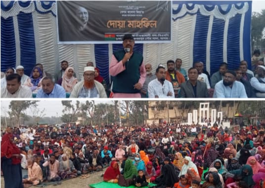 পরেশ দেবনাথ(নিজস্ব প্রতিনিধি)যশোরের কেশবপুরে বাংলাদেশ জাতীয়তাবাদী দল-বিএনপি'র চেয়ারপার্সন, সাবেক প্রধানমন্ত্রী আপোষহীন দেশনেত্রী বেগম খালেদা জিয়া'র রুহের মাগফেরাত কামনায় দোয়া মাহফিল অনুষ্ঠিত হয়েছে। বুধবার (২১ জানুয়ারি-২৬) বিকেলে পৌর ৮নং ওয়ার্ড বিএনপি'র আয়োজনে কেশবপুর সরকারি পাইলট উচ্চ মাধ্যমিক বিদ্যালয়ের প্রাঙ্গণে ওই দোয়া মাহফিল অনুষ্ঠিত হয়।অনুষ্ঠানে পৌর বিএনপির সভাপতি ও সাবেক মেয়র আলহাজ্ব আব্দুস সামাদ বিশ্বাসের সভাপতিত্বে প্রধান অতিথি হিসেবে আলোচনা সভায় বক্তব্য রাখেন বিএনপির জাতীয় নির্বাহী কমিটির সদস্য ও কেশবপুর উপজেলা বিএনপির সভাপতি, যশোর-৬ (কেশবপুর) আসনে ধানের শীষের প্রার্থী আলহাজ্ব আবুল হোসেন আজাদ।