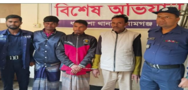 সুমন মাহমুদ শেখ/ সুনামগঞ্জের ধর্মপাশায় পুলিশের মাদক বিরোধী অভিযানে ইয়াবাসহ তিন মাদক ব্যবসায়ীকে আটক করেছে পুলিশ।শুক্রবার দিবাগত রাত আড়াইটায় ধর্মপাশা উপজেলার সুখাইড় রাজাপুর উত্তর ইউনিয়নের শান্তিপুর গ্রামের জনৈক পারুলের বাড়ির সামনের রাস্তা থেকে তাদের আটক করা হয়। এ সময় তাদের দেহ তল্লাশি করে ৪৭ পিস ইয়াবা উদ্ধার করা হয়।আটককৃতরা হলেন, জেলার পার্শ্ববর্তী জামালগঞ্জ উপজেলার কাশিপুর গ্রামের মৃত আব্দুল হামিদের ছেলে লাল চাঁন মিয়া, ভাটি লালপুর গ্রামের মৃত আ. করিমের ছেলে জুয়েল মিয়া ও ধর্মপাশা উপজেলার শান্তিপুর গ্রামের আবুল হোসেনের ছেলে আক্তার হোসেন।ধর্মপাশা থানার ভারপ্রাপ্ত কর্মকর্তা মোহাম্মদ সহিদ উল্যাহ এ তথ্য নিশ্চিত করেছেন। তিনি বলেন- “আটককৃতদের বিরুদ্ধে মাদকদ্রব্য নিয়ন্ত্রণ আইনে মামলা দায়ের করা হয়েছে এবং তাদেরকে আদালতে প্রেরণ করা হয়েছে।” মাদকের বিরুদ্ধে চলমান অভিযান আরও বেগবান ও কঠোরভাবে পরিচালনা করার দৃঢ় প্রত্যয় ব্যক্ত করে তিনি বলেন- নির্বাচনী ব্যস্ততায় এ অভিযানে কোনো ব্যত্যয় ঘটবে না।”এ মামলায় পলাতক রয়েছে জয়নাল, মামুন, শফিক, নজরুল ও শাহজাহান নামের আরও পাঁচ জন আসামি। আসামিদের গ্রেফতারের অভিযান চলমান রয়েছে।