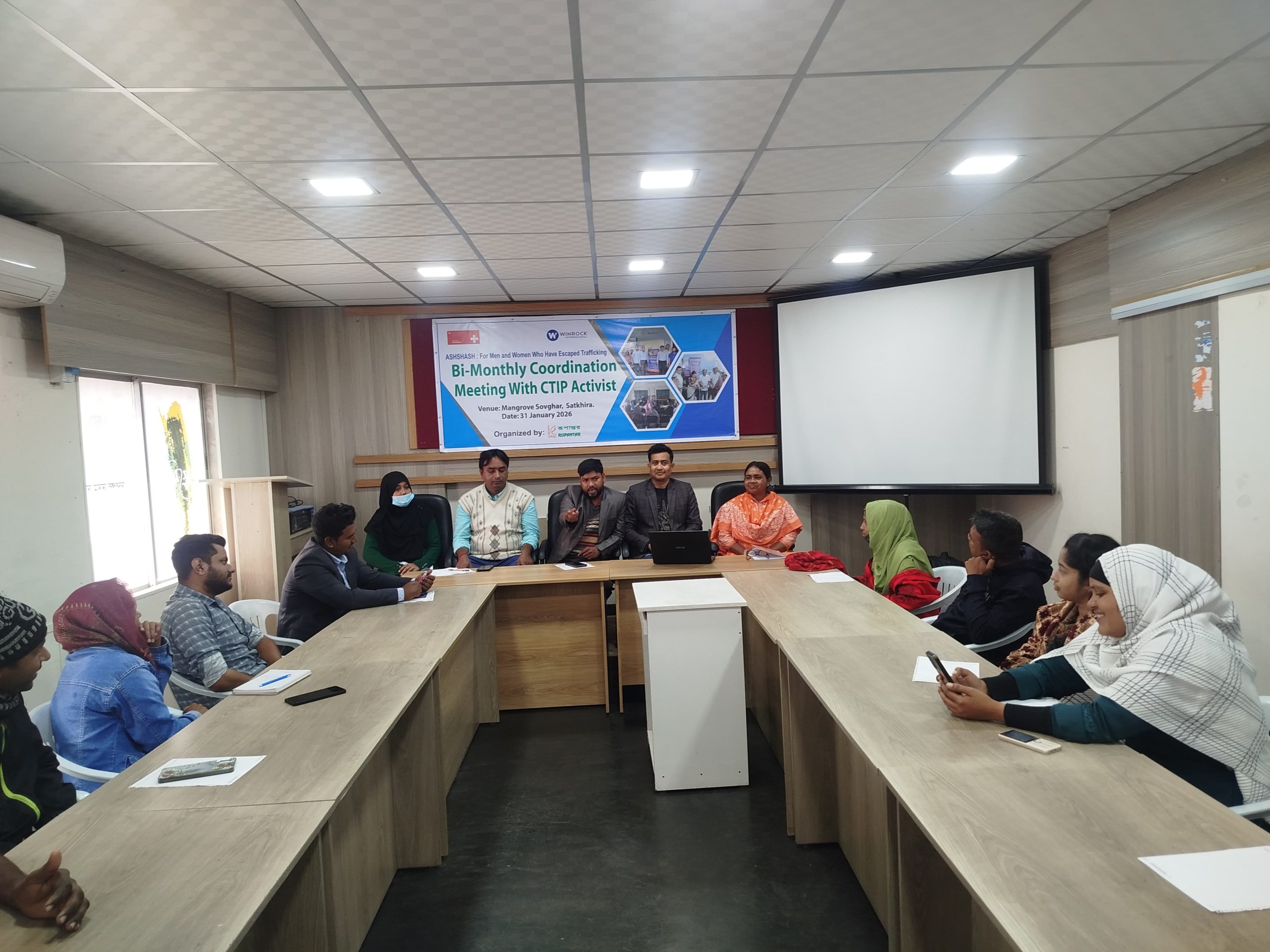 আব্দুর রশিদ সাতক্ষীরা/ সাতক্ষীরায় মানব পাচার প্রতিরোধ ও সারভাইভারদের সুরক্ষা নিশ্চিতকরণের লক্ষ্যে ‘কাউন্টার ট্রাফিকিং ইন পারসন’ (সিটিআইপি) সদস্যদের দ্বি-মাসিক সভা অনুষ্ঠিত হয়েছে। শনিবার (৩১ ডিসেম্বর) সকাল ১০টায় সাতক্ষীরা জেলা শহরের ম্যানগ্রোভ সভাঘরে উন্নয়ন সংস্থা ‘রূপান্তর’-এর আয়োজনে এই সভাটি সম্পন্ন হয়।সভায় সিটিআইপি সদস্য কনক চন্দ্র মন্ডলের সভাপতিত্বে এবং সাফিরুল ইসলামের সঞ্চালনায় প্রকল্প ম্যানেজার দীপ্তি রায় বিগত দুই মাসের মাঠ পর্যায়ের কার্যক্রম পর্যালোচনা করেন এবং কাজের ক্ষেত্রে উদ্ভূত সমস্যা, বিশেষ অর্জন ও শিক্ষণীয় দিকগুলো বিস্তারিতভাবে তুলে ধরেন।সভায় সারভাইভার (পাচারের শিকার ব্যক্তি) শনাক্তকরণ, তাদের তাৎক্ষণিক সহায়তা প্রদান এবং পুনর্বাসন প্রক্রিয়ার ওপর বিশেষ গুরুত্বারোপ করা হয়। আলোচনার মাধ্যমে সিদ্ধান্ত গৃহীত হয় যে, রেফারেল সিস্টেমের মাধ্যমে সারভাইভারদের জন্য প্রয়োজনীয় সকল প্রকার সেবা নিশ্চিত করা হবে। এছাড়া সভায় আগামী দুই মাসের জন্য একটি কার্যকর কর্মপরিকল্পনা প্রণয়ন করা হয়।অনুষ্ঠানে অতিথি হিসেবে উপস্থিত ছিলেন আশ্বাস প্রকল্পের প্রকল্প সমন্বয়কারী সুবোল কুমার ঘোষ। তিনি সারভাইভারদের সেবা প্রদানের বিভিন্ন দিক, তথ্য কর্নারের কার্যকারিতা এবং বিদেশ গমনের ক্ষেত্রে প্রয়োজনীয় কাগজপত্র যাচাই-বাছাইয়ের প্রক্রিয়া নিয়ে দিকনির্দেশনামূলক আলোচনা করেন।সভায় ‘সিটিআইপি ইয়ুথ গ্রুপ সাতক্ষীরা’ নামে একটি যুব সংগঠন গঠনের লক্ষ্যে ‘যুব সংগঠন (নিবন্ধন এবং পরিচালনা) আইন, ২০১৫’ এবং সংশ্লিষ্ট বিধিমালা অনুযায়ী স্বীকৃতিপত্র গ্রহণ ও গঠনতন্ত্র পর্যালোচনা করা হয়। একইসঙ্গে সংগঠনের একটি কার্যনির্বাহী পরিষদ গঠন করা হয়।সভায় অন্যান্যের মধ্যে আরও বক্তব্য রাখেন তাসমিনারা সুলতানা, আসমাউল হুসনা, সোহেল আহমেদ, মাসুদ করিম সুমন, কর্ণ বিশ্বাস, আইরিন সুলতানা, সুজয় খাঁ ও মনিরুজ্জামান টিটু। বক্তারা পাচার রোধে তৃণমূল পর্যায়ে জনসচেতনতা বৃদ্ধির ওপর জোর দেন।উল্লেখ্য, সুইজারল্যান্ড সরকারের উন্নয়ন সংস্থা এসডিসি-এর অর্থায়নে এবং উইনরক ইন্টারন্যাশনালের কারিগরি সহযোগিতায় ‘আশ্বাস’ প্রকল্পের আওতায় রূপান্তর মাঠ পর্যায়ে এই কার্যক্রম পরিচালনা করছে। সভায় পাচার হওয়া ব্যক্তিদের মর্যাদা পুনরুদ্ধার ও সামাজিক পুর্নবাসনে সংশ্লিষ্ট সকলকে ঐক্যবদ্ধভাবে কাজ করার আহ্বান জানানো হয়।