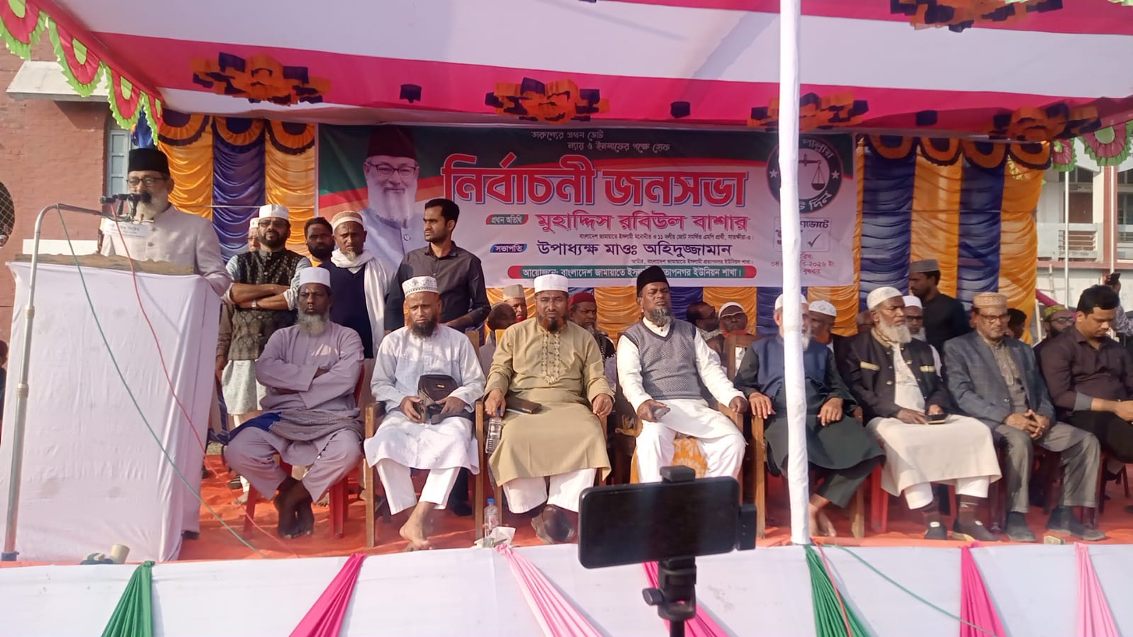 আব্দুর রশিদ (সাতক্ষীরা) প্রতাপনগরের জনসভায় এমপি প্রার্থী রবিউল বাশার। সাতক্ষীরা-৩ (আশাশুনি-কালিগঞ্জ) আসনের ১১ দলীয় জোট ও জামায়াতে ইসলামী মনোনীত এমপি প্রার্থী মুহাদ্দিস রবিউল বাশার বলেছেন-আমরা আল্লাহর আইন চাই,সৎ লোকের শাসন চাই। আল্লাহর আইনের পক্ষে আমরা সর্থন দেব,এর জন্য জান-মাল দেওয়ার জন্য তৈরী থাকবো। সৎ লোকের শাসন ছাড়া আল্লাহর আইন চালু হতে পারে না এবং সমাজ দুর্নীতি মুক্ত হতে পারেনা।আমরা দেখেছি ইতিপূর্বের শাসনগুলো ছিল দুর্নীতিপূর্ণ। আল্লাহ আমাদেরকে যদি,জামায়াতে ইসলামীকে যদি এদেশের জনগণ সরকার গঠনের পর্যায়ে নিয়ে যায়, তাহলে আমরা দুর্নীতি নির্মূলে সর্বাত্মক চেষ্টা করবো। চাঁদাবাজি,ঘুষ,দখলবাজি বন্ধ করার চেষ্টা করবো। আসুন আমরা দুর্নীতিমুক্ত একটি দেশ গড়ে তোলার চেষ্টা করি। প্রধান অতিথি বলেন,হিন্দু,মুসলিম,বৌদ্ধ,খ্রিস্টান সবাই সবার অধিকার ধর্মীয়ভাবে,স্বাধীনভাবে পালন করবে। আমরা দেশকে গড়ার কাজে উন্নয়নের কাজে ঐক্যবদ্ধভাবে চেষ্টা করবো।রবিউল বাশার বলেন,আপনারা আওয়ামীলীগ, বিএনপি জাতীয় পার্টির শাসন দেখেছেন একবার জামায়াতকে দেখুন। তিনি দাঁড়িপাল্লা প্রতিকে ও হ্যাঁ ভোটের পক্ষে সমর্থন দেওয়ার জন্য সকলের প্রতি আহ্বান জানান। বুধবার (০৪ ফেব্রুয়ারী) বিকাল প্রতাপনগর ইউনাইটেড হাইস্কুল মাঠে ইউনিয়ন জামায়াত আয়োজিত নির্বাচনী জনসভায় প্রধান অতিথির বক্তব্যে তিনি উপরোক্ত কথা বলেন। বিকাল ৩ টার আগেই মাঠ কানায় কানায় পরিপূর্ণ হয়ে যায়। মহিলাদের উপস্থিতি ছিল চোখে পড়ার মত।ইউনিয়ন আমীর উপাধ্যক্ষ মাওঃ অহিদুজ্জামানের সভাপতিত্বে ও সেক্রেটারী মাওঃ আল-আমীন ও মাওঃ কামরুল ইসলামের সঞ্চালনায় জনসভায় প্রধান অতিথির বক্তব্য রাখেন এমপি প্রার্থী মুহাদ্দিস রবিউল বাশার। বিশেষ অতিথির বক্তব্য রাখেন সাতক্ষীরা জেলা জামায়াতের সেক্রেটারি মাওঃ আজিজুর রহমান,জেলা কর্মপরিষদ সদস্য এড.আব্দুস সোবহান মুকুল,জেলা শ্রমিক কল্যাণ ফেডারেশনের সহ-সভাপতি চেয়ারম্যান মাওঃ আবু বকর সিদ্দিক, সেক্রেটারি প্রফেসর আব্দুল গফফার,উপজেলা আমীর আবু মুছা তারিকুজ্জামান তুষার,নায়েবে আমীর মাওঃ নুরুল আবছার মুর্তাজা,সেক্রেটারি অধ্যক্ষ মাওঃ আনওয়ারুল হক,সহ-সেক্রেটারী ডাঃ রোকনুজ্জামান,সমাজ কল্যান সম্পাদক প্রতাপনগর চেয়ারম্যান প্রার্থী মাওঃ রিয়াছাত আলী,জেলা ছাত্র শিবিরের প্রকাশনা সম্পাদক মোঃ আনিছুর রহমান,শহর ছাত্র শিবির সেক্রেটারী মেহেদী হাসান,সাবেক শিবির নেতা মাগফুর রহমান,মুক্তিযোদ্ধা মোফাজ্জেল হোসেন,সাতক্ষীরা সরকারী কলেজ ছাত্র শিবির সভাপতি রফিকুল ইসলাম,গদাইপুর আব্দুল লতিফ কলেজের প্রভাষক ও সনাতন ধর্মের প্রতিনিধি দীপ্র কুমার মন্ডল,শহীদ আনাছ বিল্লাহর পিতা আরেজ আ