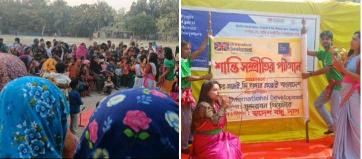 পরেশ দেবনাথ, (নিজস্ব প্রতিনিধি)আসন্ন জাতীয় সংসদ নির্বাচনকে সামনে রেখে শান্তি, সম্প্রীতি ও অহিংস পরিবেশ নিশ্চিত করতে দ্য হাঙ্গার প্রজেক্ট-বাংলাদেশের মাল্টি-স্টেকহোল্ডার ইনিশিয়েটিভ ফর পিস অ্যান্ড স্ট্যাবিলিটি (MIPS) প্রকল্পের উদ্যোগে বিভিন্ন এলাকায় সাংস্কৃতিক কর্মসূচি অনুষ্ঠিত হয়েছে। সোমবার (০৯ ফেব্রুয়ারি-২৬) সুন্দরবন থিয়েটারের পরিবেশনায় এবং স্বদেশ বন্ধু দাস-এর আলোচনা ও নির্দেশনায় "সংঘাত নয়, শান্তি ও সম্প্রীতির বাংলাদেশ গড়ি" এই উদ্যোগের অংশ হিসেবে ডুমুরিয়া বাজার, রূপসা সেখপুরা বাজার এবং সাতক্ষীরা সদর এলাকায় পট ও জারি গান এবং পথনাটক পরিবেশিত হয়। স্থানীয় পর্যায়ে এসব কর্মসূচি বাস্তবায়নে পিস ফ্যাসিলিটেটর ও যুব দলের সদস্যরা সক্রিয়ভাবে সহযোগিতা করেন। কর্মসূচির মূল উদ্দেশ্য ছিল কমিউনিটি ও রাজনৈতিক দলের মধ্যে শান্তি, সহনশীলতা এবং সম্প্রীতির বার্তা ছড়িয়ে দেওয়া।এর আগে রোববার (০৮ ফেব্রুয়ারি-২৬) বাগেরহাট সদরের দরগা ও মোরেলগঞ্জ বাজারে একই ধরনের সাংস্কৃতিক অনুষ্ঠান আয়োজন করা হয়। প্রতিটি অনুষ্ঠানে পুরুষ, নারী, সুশীল সমাজের প্রতিনিধি ও বিভিন্ন রাজনৈতিক দলের নেতাকর্মীসহ ৫০০ জনেরও বেশি মানুষ অংশগ্রহণ করেন, যা জনসাধারণের ব্যাপক আগ্রহ ও সম্পৃক্ততা প্রমাণ করে। অনুষ্ঠানের পাশাপাশি যুব দলের সদস্যরা শান্তিপূর্ণ নির্বাচন নিশ্চিত করতে কমিউনিটির ভূমিকা নিয়ে সচেতনতামূলক লিফলেট বিতরণ করেন। প্রতিটি এলাকায় ৫০০টির বেশি লিফলেট বিতরণ করা হয়, যেখানে অহিংসতা, পারস্পরিক শ্রদ্ধা ও গণতান্ত্রিক অংশগ্রহণের গুরুত্ব তুলে ধরা হয়।