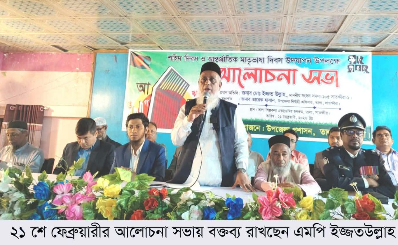 আব্দুর রশিদ (সাতক্ষীরা) সারা দেশের ন্যায় সাতক্ষীরা তালায় যথাযোগ্য মর্যাদায় ২১ শে ফেব্রুয়ারি শহীদ দিবস ও আন্তর্জাতিক মাতৃভাষা দিবস পালিত হয়েছে।শনিবার(২১ শে ফেব্রুয়ারি) রাত ১২ টা এক মিনিটে শহীদ মিনারে পুষ্পমাল্য অর্পনের মাধ্যমে দিনটি শুভ সূচনা করা হয়, সকাল ৮ টায় তালাবিদে পুরাতন স্কুল মাঠ হতে প্রভাত ফেরী উপজেলা গুরুত্বপূর্ণ সড়ক দক্ষিণ শেষে শিল্পকলা একাডেমিতে এক আলোচনা সবার আয়োজন করা হয়। আলোচনা সভায় সভাপতিত্ব করেন তালা উপজেলা নির্বাহী কর্মকর্তা তারেক হাসান। ইন্সট্রাক্টর ইমান আলীর পরিচালনায় প্রধান অতিথি হিসেবে উপস্থিত ছিলেন সাতক্ষীরা -১( তালা -কলারোয়া) সংসদ সদস্য অধ্যক্ষ ইজ্জতউল্লা। বিশেষ অতিথি হিসেবে উপস্থিত ছিলেন সহকারী কমিশনার ভূমি রাহাত খান, সাতক্ষীরা জেলা জামায়তের নায়েবে আমির ডাক্তার মাহমুদুল হক, তালা থানার অফিসার ইনচার্জ মোঃ শহিদুল ইসলাম, বিএনপি সভাপতি বাবু মৃণাল কান্তি রায়, উপজেলা জামায়াতের আমির মাওলানা মহিদুল্লাহ, তালা উপজেলা বিএনপির সাধারণ সম্পাদক শেখ শফিকুল ইসলাম, উপজেলা জামায়াতের সেক্রেটারি সহকারী অধ্যাপক ইদ্রিস আলী, ইসলামকাটি ইউনিয়ন পরিষদ চেয়ারম্যান অধ্যাপক গোলাম ফারুক, তালা উপজেলা যুবদলের আহবায়ক মির্জা আতিয়ার রহমান, সিনিয়র সাংবাদিক এম এ হাকিম, জাহাঙ্গীর হাসান, তালা উপজেলা প্রেসক্লাবের সভাপতি মোঃ আকবর হোসেন, সাধারণ সম্পাদক কামরুজ্জামান মিঠু, সহ-সভাপতি সাইদুর রহমান সাঈদ, যুগ্ন সাধারন সম্পাদক মির মিল্টন, সহ-সাংগঠনিক সম্পাদক আতাউর রহমানসহ সাংবাদিকবৃন্দ, উপজেলা বিভিন্ন দপ্তরের কর্মকর্তা বৃন্দ, বিভিন্ন রাজনৈতিক দলের নেতৃবৃন্দ, বিভিন্ন স্কুল ও কলেজের শিক্ষক শিক্ষার্থীবৃন্দ উপস্থিত ছিলেন,এ সময় প্রধান অতিথির বক্তব্যে সংসদ সদস্য অধ্যক্ষ ইজ্জতউল্লাহ বলেন, রাষ্ট্রভাষা বাংলা ভাষার জন্য সালাম রফিক, জব্বার সহ নাম না জানা অনেকে শহীদ হয়েছেন, ১৯৭১ সালের মুক্তিযুদ্ধে কয়েক লক্ষ লোক শহীদ হয়েছে, ২৪ এর গণঅভ্যুত্থানে অনেক শিক্ষার্থীসহ অনেকে শহীদ হয়েছেন। তাদের রুহের মাগফেরাত কামনা করছি, সেই সাথে যে বাংলা ভাষার জন্য ছাত্র জনতা জীবন দিল এখনো অফিস আদালত ইংরেজিতে চিঠিপত্র লেখা হয়, দেশের সকল অফিস আদালতে চিঠিপত্র বাংলা ভাষা করার জন্য জোর দাবি জানাচ্ছি, তিনি আরো বলেন, দল-মত নির্বিশেষে আমি সকলের এমপি, সকলকে সাথে নিয়ে উপজেলা উন্নয়ন করতে চাই, আপনারা সকলে আমার জন্য দোয়া করবেন।
