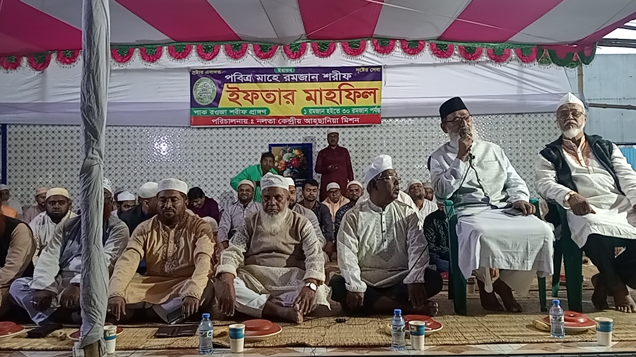 আব্দুর রশি(সাতক্ষীরা)সাতক্ষীরা জেলার কালিগঞ্জ উপজেলার নলতা শরীফে পীর-এ কামেল বিংশ শতাব্দীর শ্রেষ্ঠ মোজাদ্দেদ, অবিভক্ত বাংলা ও আসামের শিক্ষা বিভাগের সহকারী পরিচালক, বিশিষ্ট শিক্ষাবিদ ও শিক্ষা সংস্কারক, প্রখ্যত সাহিত্যিক, সমাজ সেবক, আত্মাধিক সাধক, সমাজ সংস্কারক, জ্ঞান তাপস, মুসলিম রেনেঁসার অগ্রদুত, মুক্তবুদ্ধি ও অসাম্প্রদায়িক চিন্তা-চেতনার অধিকারী, মনোচিকিৎসক, ঐতিহাসিক, দার্শনিক সুলতানুল আউলিয়া কুতুবুল আকতাব গওছে জামান আরেফ বিল্লাহ হজরত শাহ্ছুফী আলহাজ্জ খানবাহাদুর আহ্ছানউল্লা (রঃ) এঁর হাতে গড়া ‘‘স্রষ্টার এবাদত ও সৃষ্টের সেবা” ব্রত নিয়ে চলা নলতা কেন্দ্রীয় আহ্ছানিয়া মিশনের সার্বিক ব্যবস্থাপনায় নলতা পাক রওজা শরীফ প্রাঙ্গণে অনুষ্ঠিত ৫ রমজানে দেশের সর্ববৃহৎ ইফতার মাহফিলে প্রধান অতিথি হিসেবে পবিত্র কোরআন ও হাদীসের আলোকে মূল্যবান বক্তব্য রাখেন, সাতক্ষীরা- ৩আসনের সংসদ সদস্য মুহাদ্দিস রবিউল বাশার। তিনি ইফতার মাহফিলের পূর্বে পাক রওজা শরীফ জিয়ারত করেন এবং ইফতারের পরে মাগরিবের নামাজে ইমামতি করেন। ইফতার মাহফিলে দোয়া পরিচালনা করেন, নলতা শরীফ শাহী জামে মসজিদের খতিব মুফতি গোলাম কিবরিয়া। ইফতার মাহফিলে উপস্থিত ছিলেন, সাতক্ষীরা জেলা জামায়াতে সেক্রেটারি মাওলানা আজিজুর রহমান, কালিগঞ্জ উপজেলা জামায়াতের আমির মাওলানা আব্দুল ওহাব সিদ্দিকী, কালিগঞ্জ উপজেলা জামায়াতের সহসেক্রেটারি মাওলানা আনোয়ারুল ইসলাম, কালিগঞ্জ উপজেলা শুরা ও কর্মপরিষদ সদস্য আবু রাসেল আশকারী, আবু ইসলাম, নলতা ইউনিয়ন জামাতের আমির মাস্টার আকবর হোসেন সেক্রেটারি কাজী হাবিবুল্লাহ সহ দলটির উপজেলা ও ইউনিয়নের বিভিন্ন পর্যায়ে দায়িত্বশীল, মিশনের সাধারণ সম্পাদক ডাঃ নজরুল ইসলাম, কর্মকর্তা আলহাজ্জ শিক্ষক সাইদুর রহমান, আলহাজ্জ শিক্ষক আবুল ফজল, আলহাজ্জ চৌধুরী আমজাদ হোসেন, খায়রুল হাসানসহ মিশনের কর্মকর্তা-কর্মচারী, ব্যবসায়ী, শিক্ষকসহ বিভিন্ন পর্যায়ের ৬ সহস্রাধিক মুসুল্লিবৃন