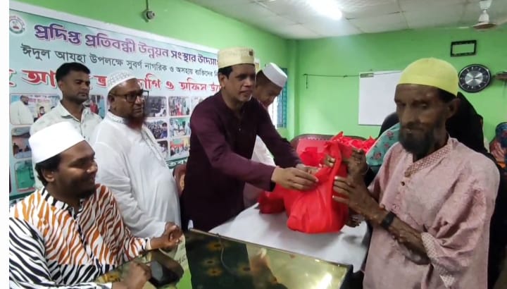 আব্দুর রশিদ (সাতক্ষীরা) শুক্রবার সকাল ১১ টায় সাতক্ষীরা সদর পৌরসভার ৭নং ওয়ার্ড ইটাগাছায় প্রদীপ্ত প্রতিবন্ধী উন্নয়ন সংস্থার আয়োজনে ৩০০শ" প্রতিবন্ধীদের মাঝে ঈদ সামগ্রী বিতরণ করা হয়েছে।এ সময় অনুষ্ঠানে মোঃ আতিকুজ্জামান সাহেদএর সভাপতিত্বে প্রধান অতিথি হিসেবে বক্তব্য রাখেন, ডাঃ আবুল কালাম বাবলা বিশিষ্ট ব্যবসায়ী এবং সমাজসেব ও প্রধান উপদেষ্টা প্রদীপ্ত প্রতিবন্ধী উন্নয়ন সংস্থা ।বিশেষ অতিথি হিসেবে বক্তব্য রাখেন তৈয়েব হাসান সামছুজ্জামান,জাতীয় ক্রীড়া পুরস্কারপ্রাপ্ত, সাবেক ফিফা রেফারী ও রেফারী ইন্সট্রাক্টর, বাফুফে ও উপদেষ্টা প্রদীপ্ত প্রতিবন্ধী উন্নয়ন সংস্থা।অনুষ্ঠানে আরো উপস্থিত ছিলেন মোঃ আইয়ুব হোসেন বিশিষ্ট ব্যবসায়ী ও উপদেষ্টা প্রদীপ্ত প্রতিবন্ধী উন্নয়ন সংস্থা। আব্দুল্লাহ বিন এরশাদ চেয়ারম্যান, ইউনাইট, ফাউন্ডেশন,উত্তরা, ঢাকা।উপস্তিত ছিলেন এন এ এন টিভির সাতক্ষীরা জেলা প্রতিনিধি আব্দুর রশিদ সৈয়দ কামরুজ্জামান মামুন,বিশিষ্ট সমাজসেবক এবং যুব নেতা সাত নম্বর ওয়ার্ড বিএনপি সাতক্ষীরা। মিসেস ফরিদা রহমান সাধারণ সম্পাদক প্রদীপ্ত প্রতিবন্ধী উন্নয়ন সংস্থা।জেসমিন নাহার সহ-সভাপতি প্রদীপ্ত প্রতিবন্ধী উন্নয়ন সংস্থা।এ সময় অনুষ্ঠানটি পরিচালনা করেন, মোঃ মুজাহিদুর রহমান সহকারি পরিচালক প্রদীপ্ত প্রতিবন্ধী স্কুল এন্ড ট্রেনিং সেন্টার।